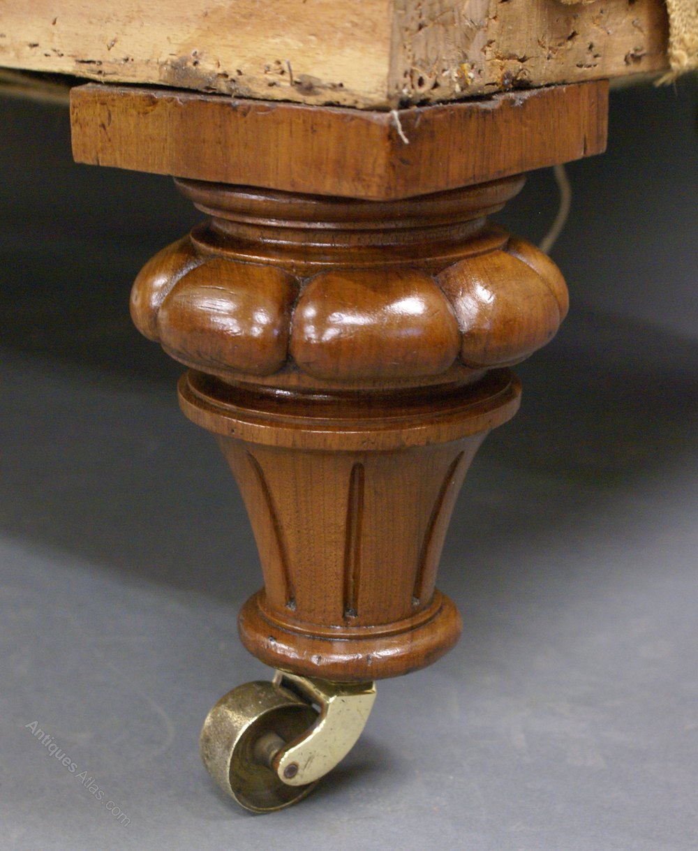 In great and original condition standing on original brass castors with turned walnut legs, the frame is beech and also in very good condition. 2010mm wide, 850mm deep, 710mm high and 420mm seat height. Circa 1870.