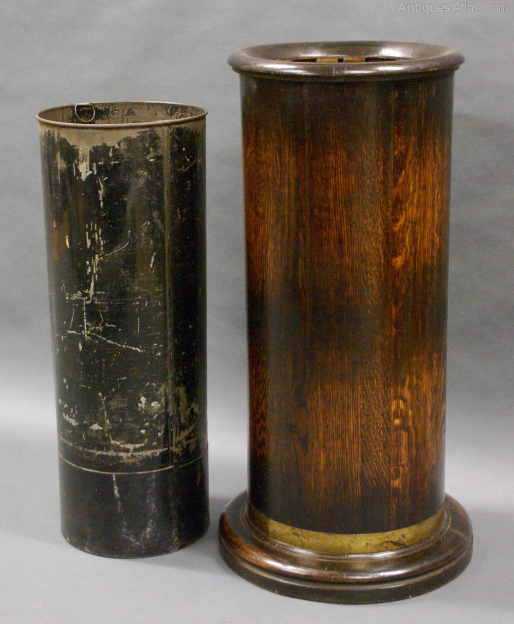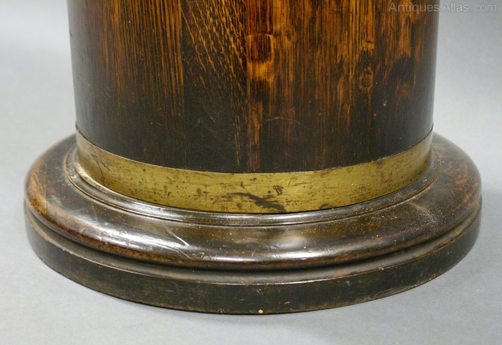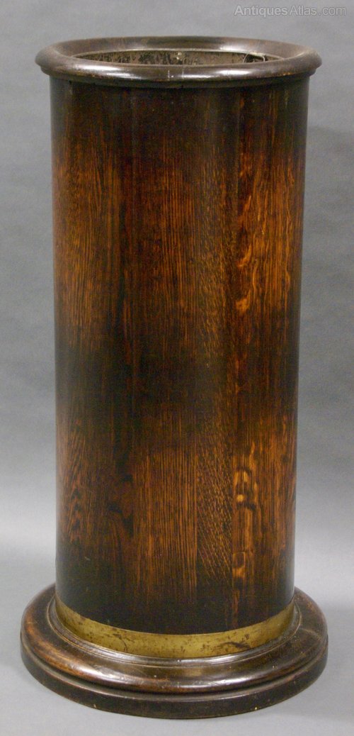 Of coopered construction in solid oak and with a brass band at the bottom and original liner. 660mm high and 340mm diameter. Circa 1890.