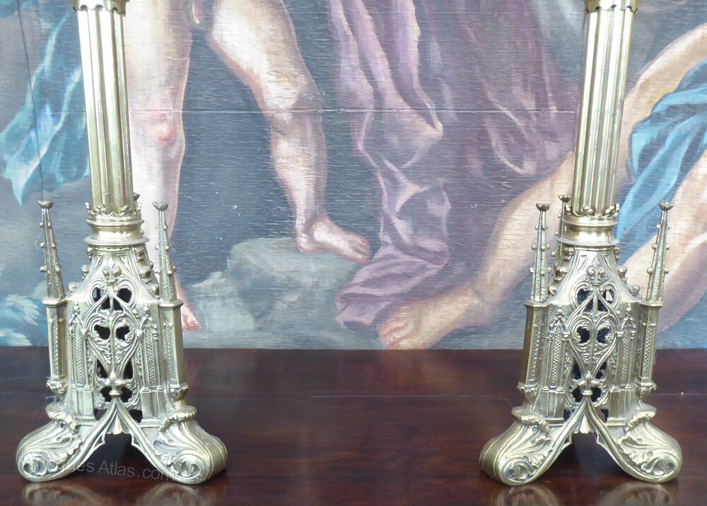Pair of Victorian Gothic Brass Candlesticks