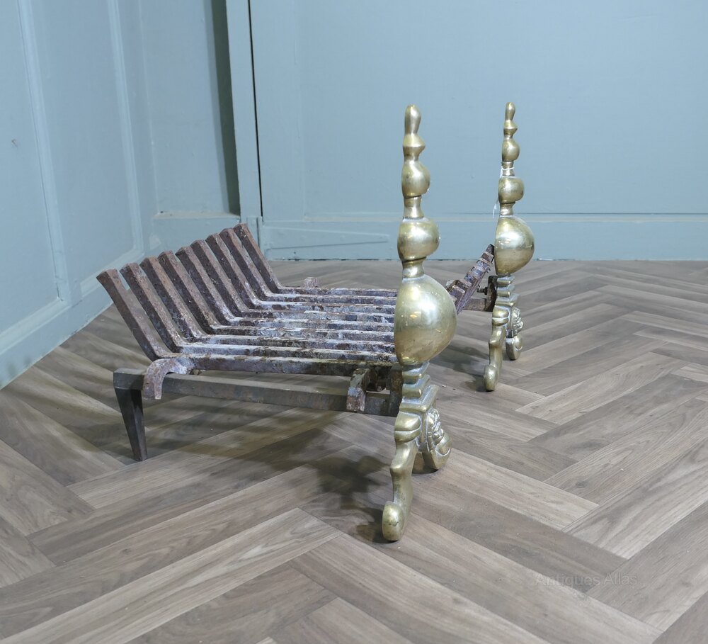 This is a good quality pair of Brass Andirons and they come with their original log grate