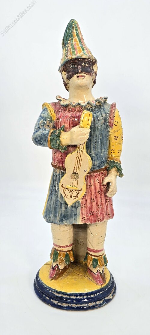 This superb, large, and highly decorative late 19th century Italian naïve majolica pottery figure is hand modelled in clay, which is painted and glazed in bold colours.