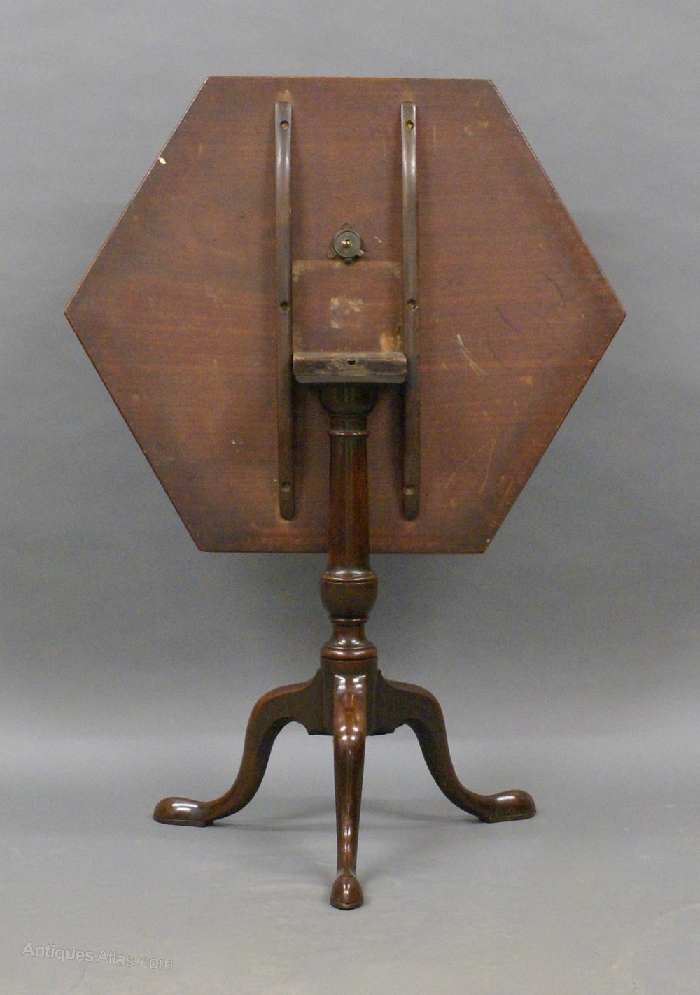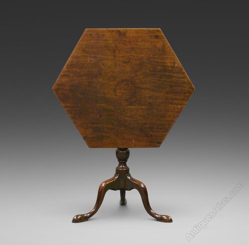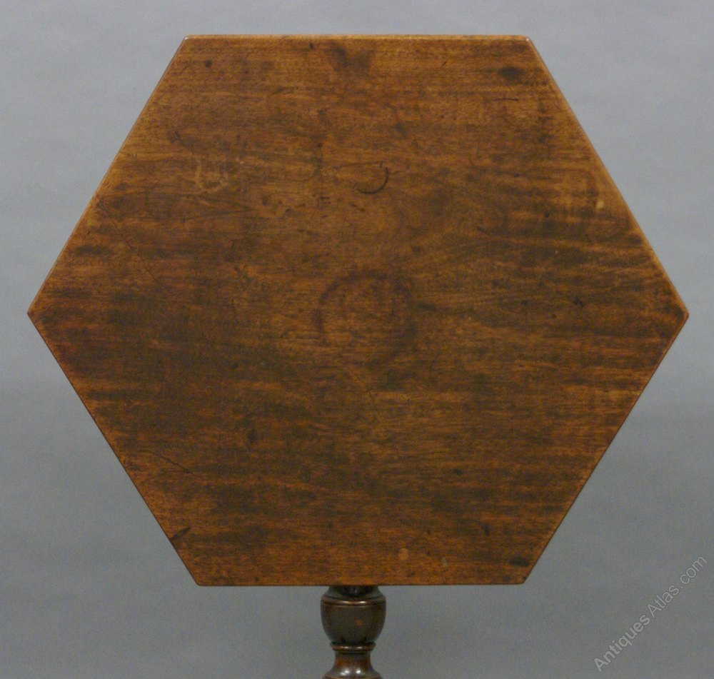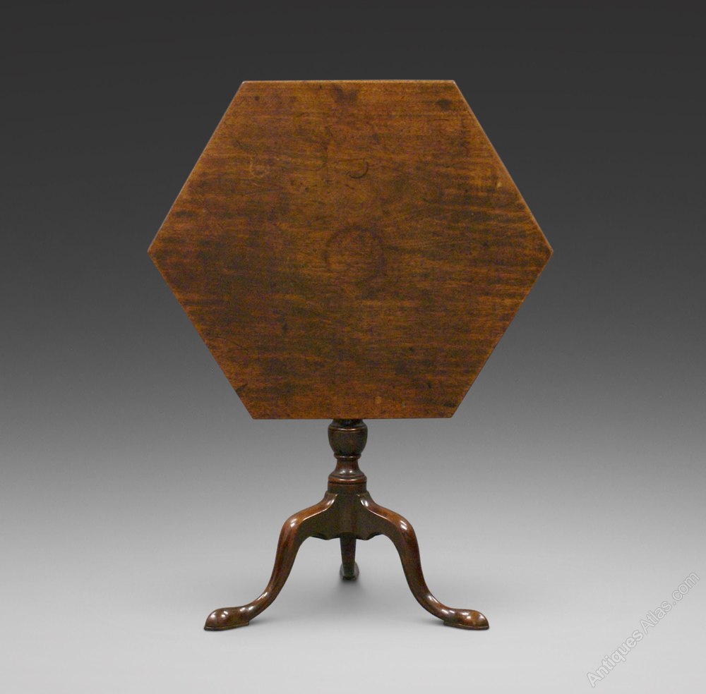 An unusual Georgian mahogany hexagonal tripod table, in very good condition and of untouched colour and patina. 700mm high, 790mm wide and 670mm deep. Circa 1780.
