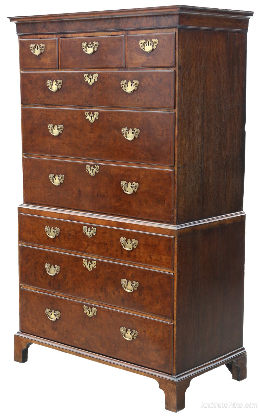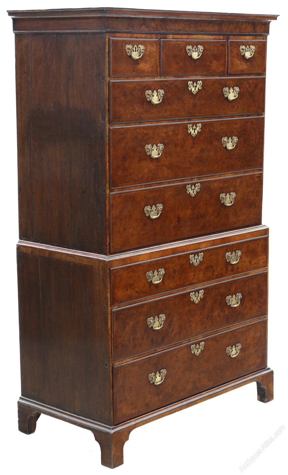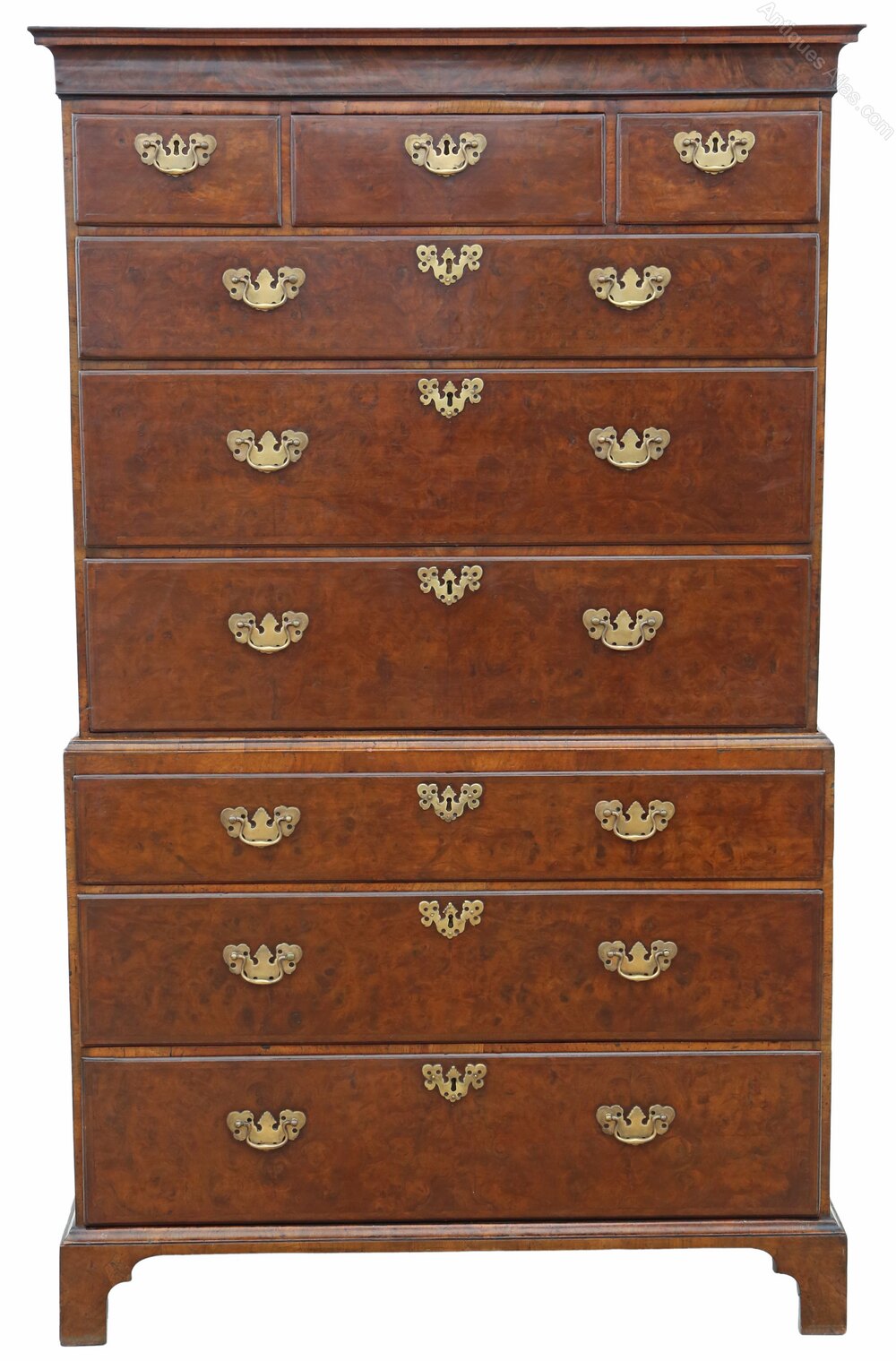 Antique 18th Century Burr Walnut Tallboy Chest on Chest of Drawers – Fine Quality