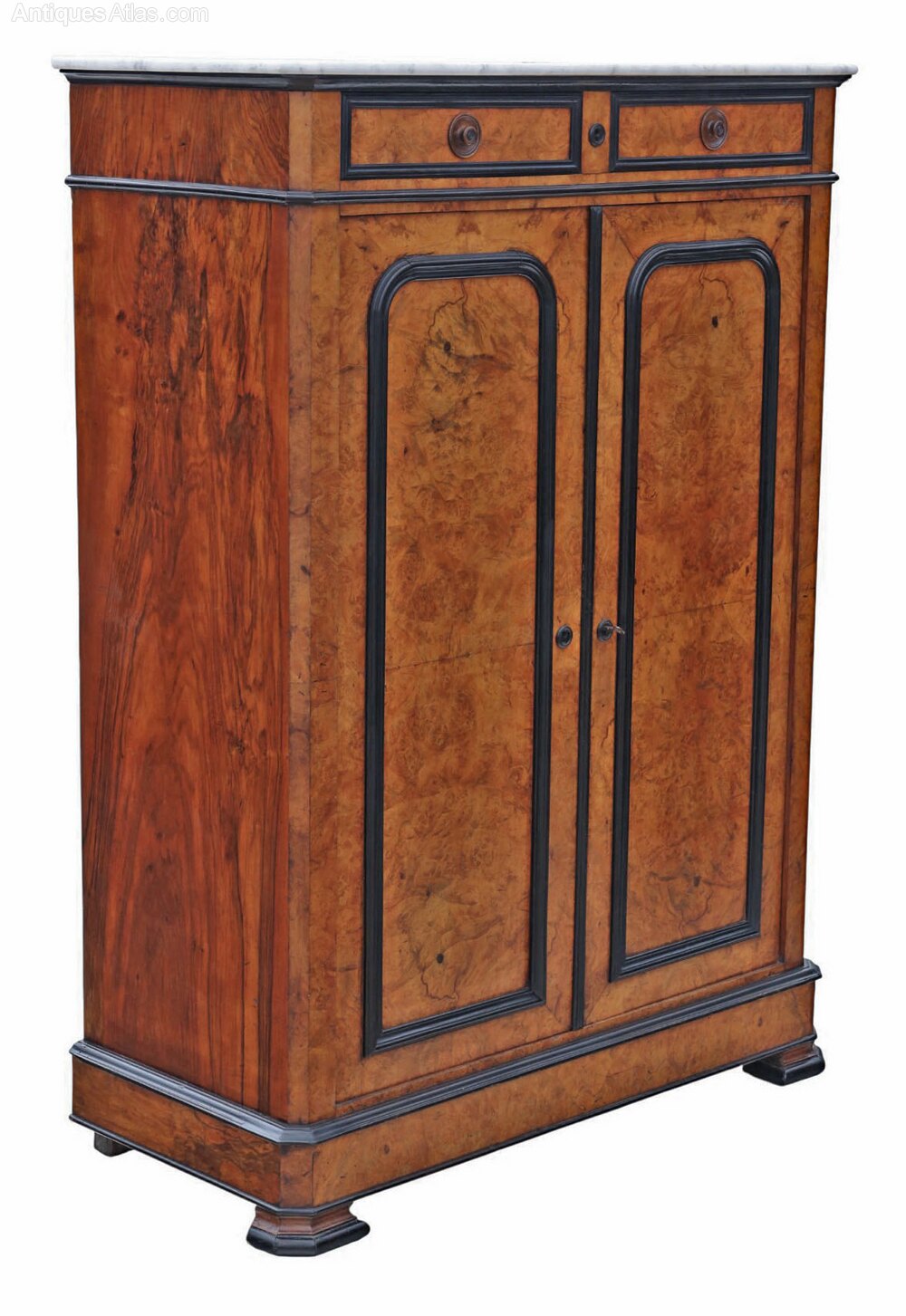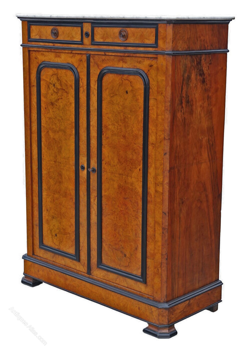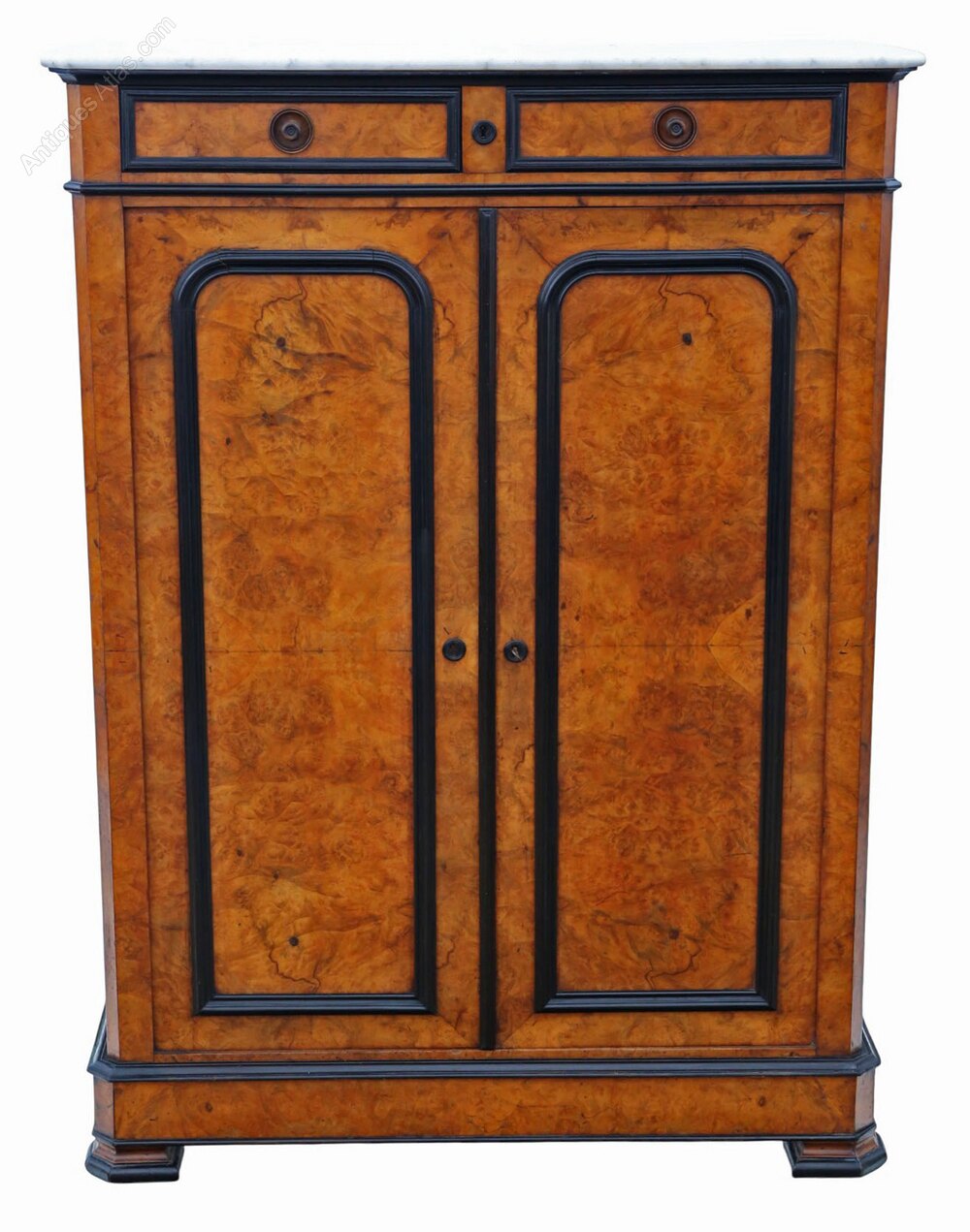Antique 19th Century Ebonised & Burr Walnut Cabinet Press Cupboard with Marble Top – Fine Quality