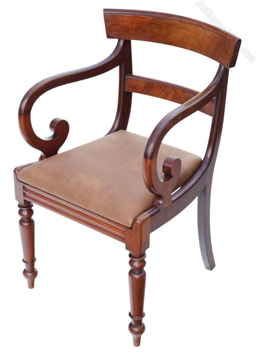 Fine Quality Antique 19th Century Mahogany Scroll-Arm Elbow Chair – Carver Dining, Desk, or Hall Chair