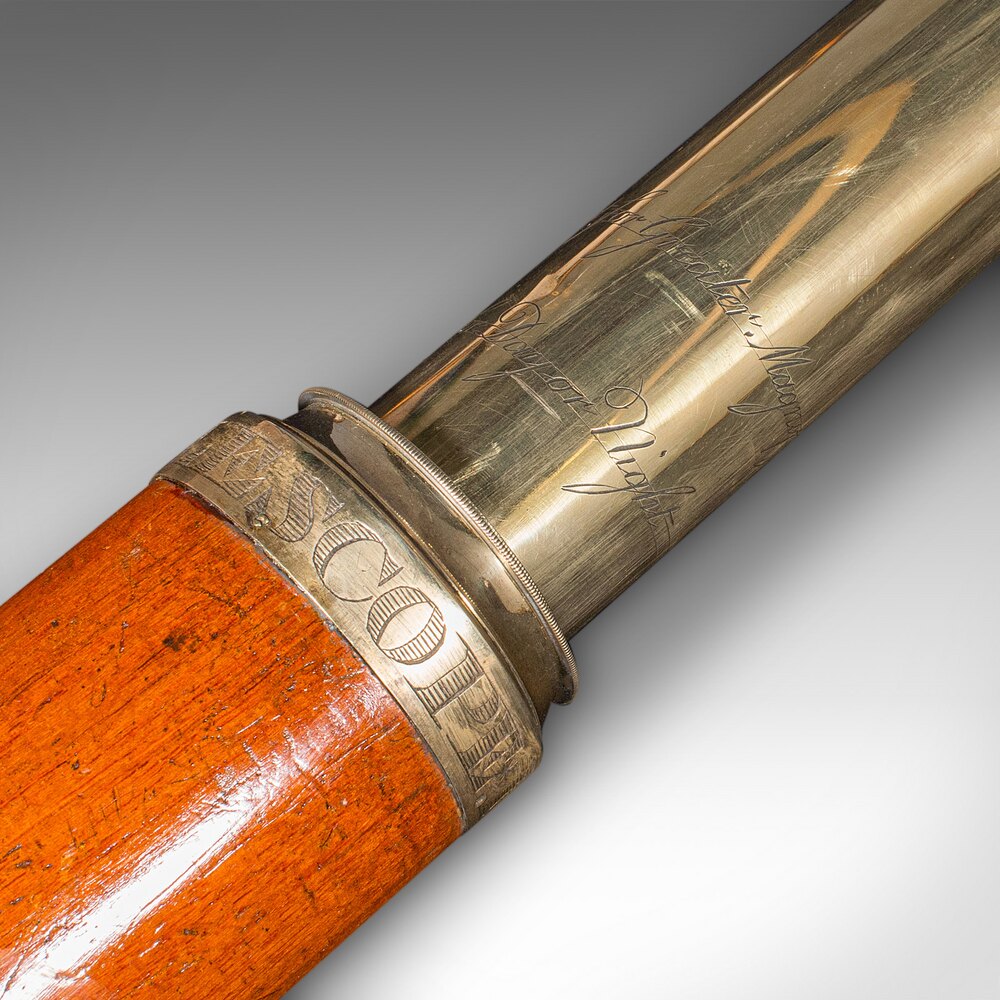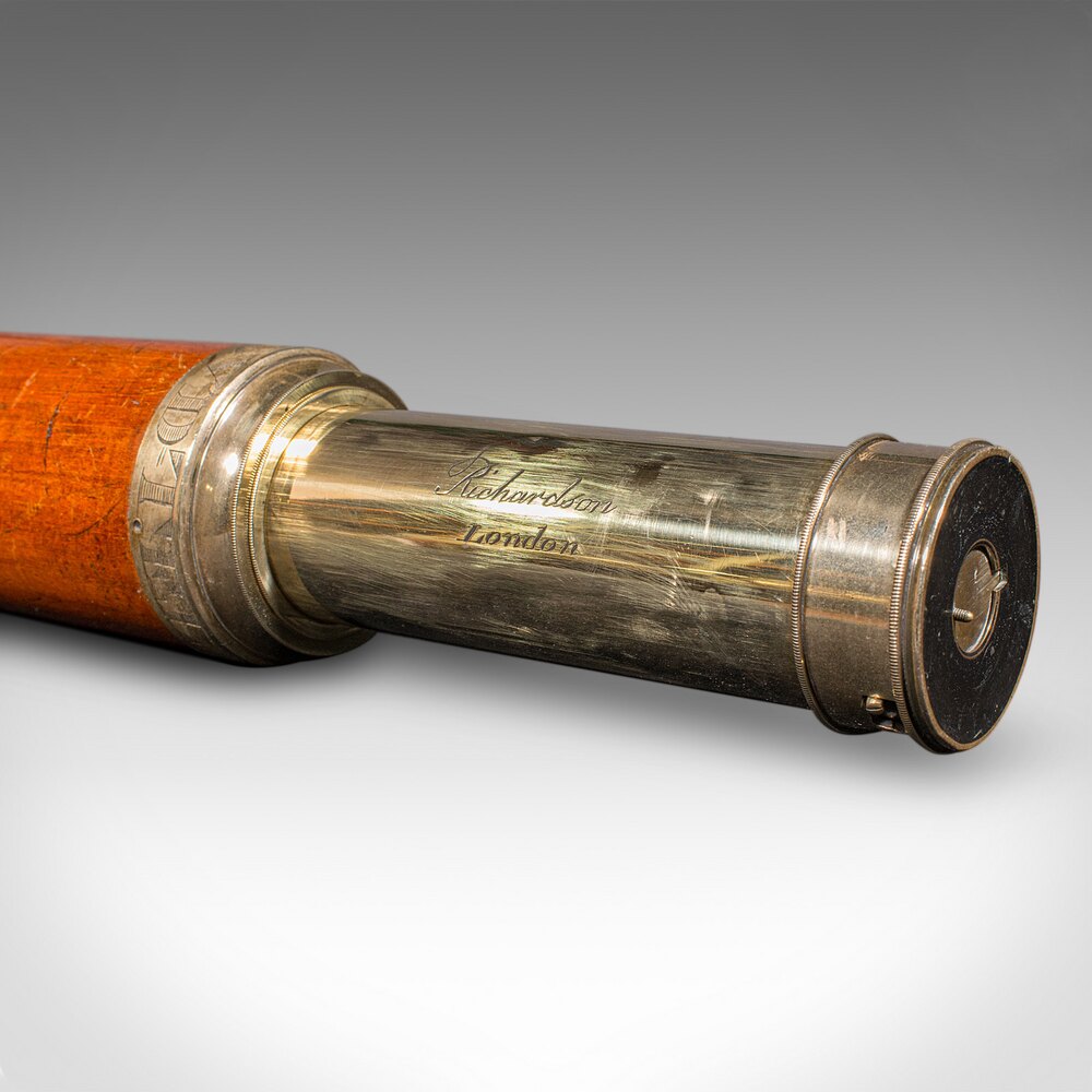 This is a large antique 2-draw telescope. An English, terrestrial or maritime ‘Day or Night’ instrument by Richardson of London, dating to the Regency period, circa 1820.