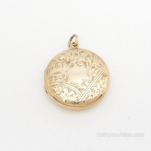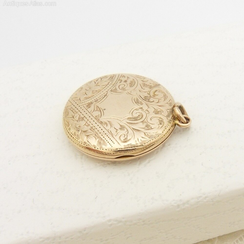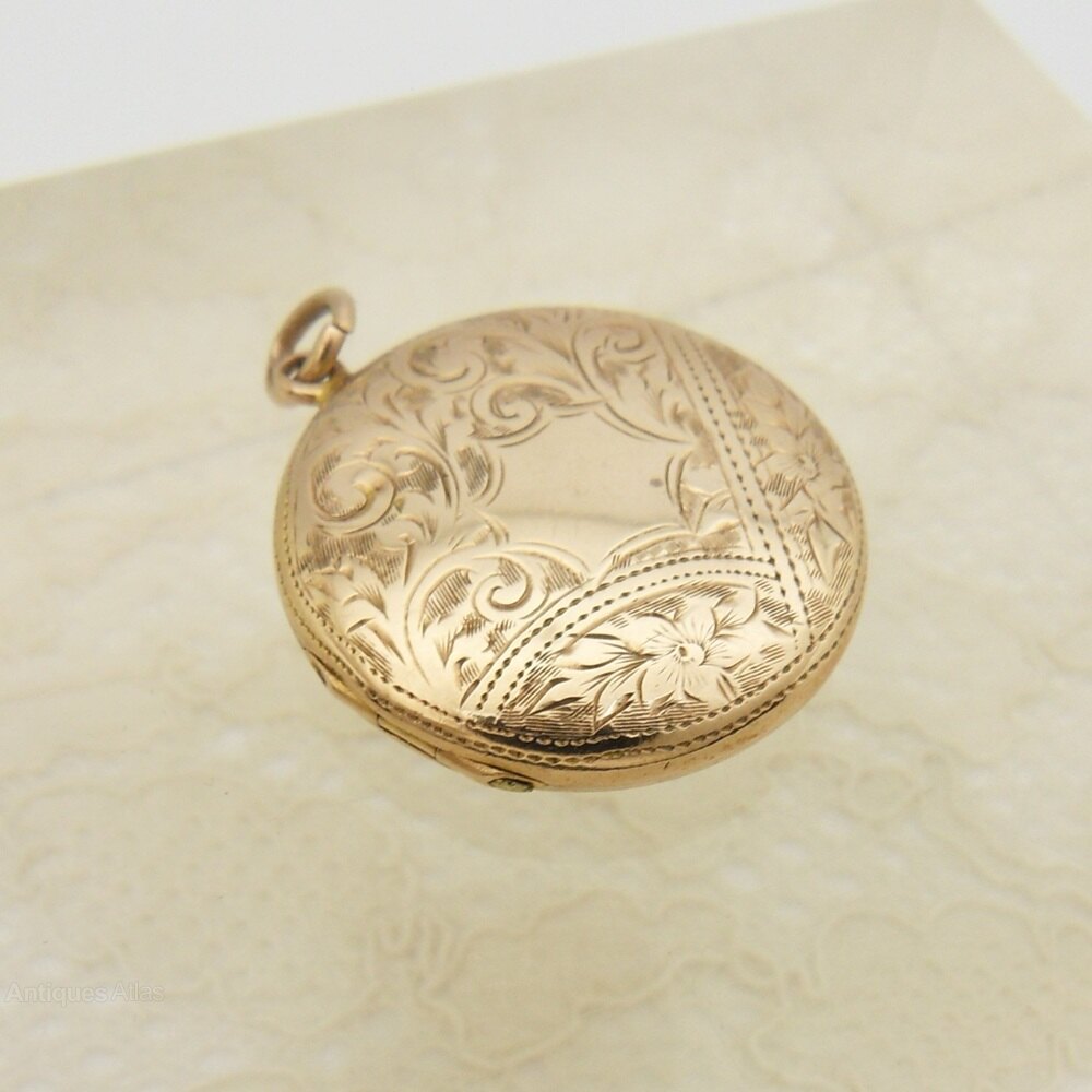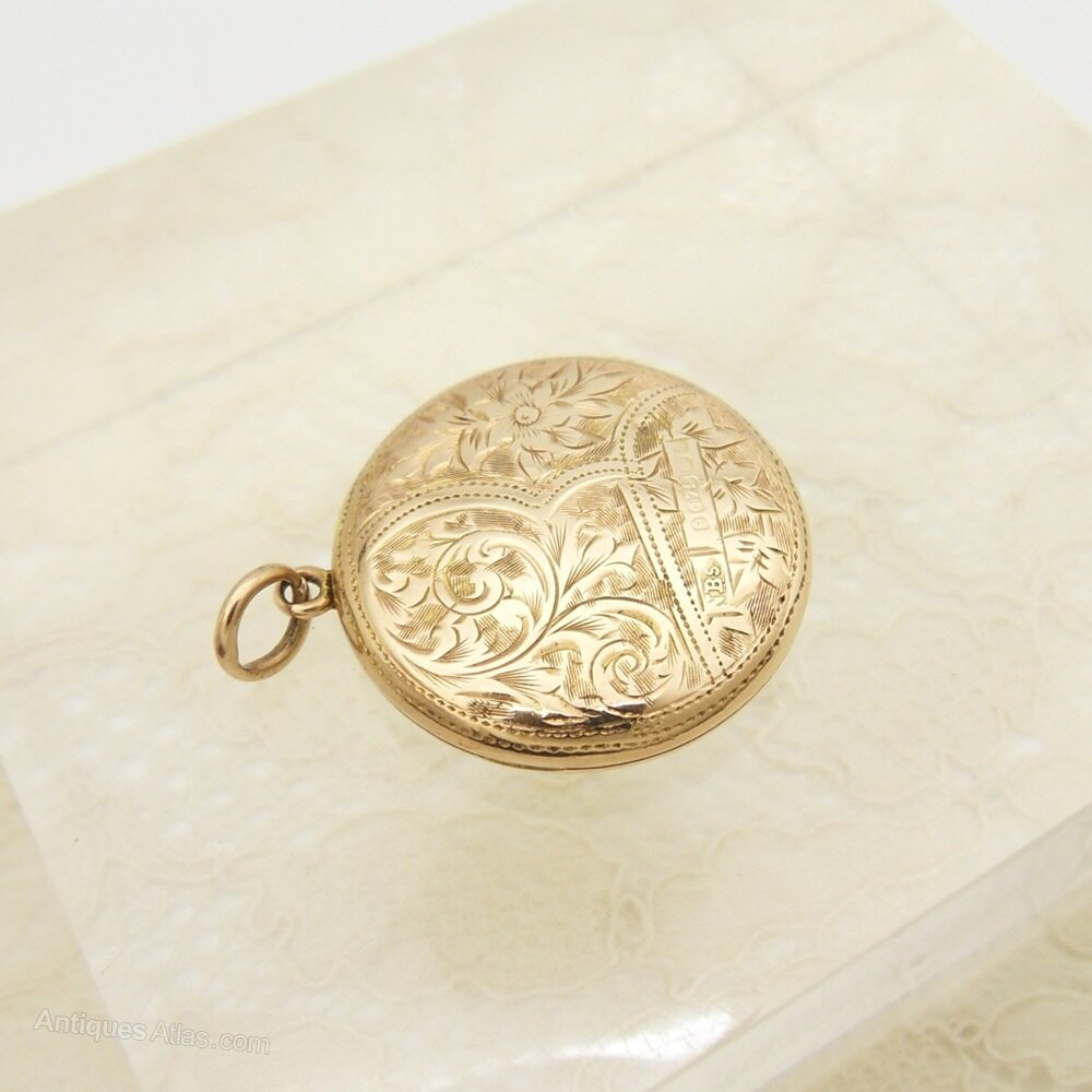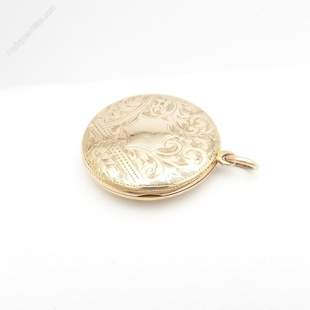 Antique circular 9ct gold locket with ornate engraving hallmarked Birmingham 1910 Nathan Brothers
