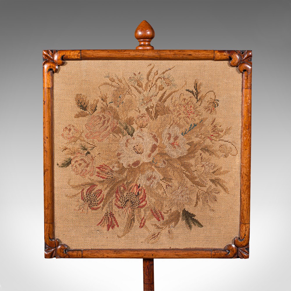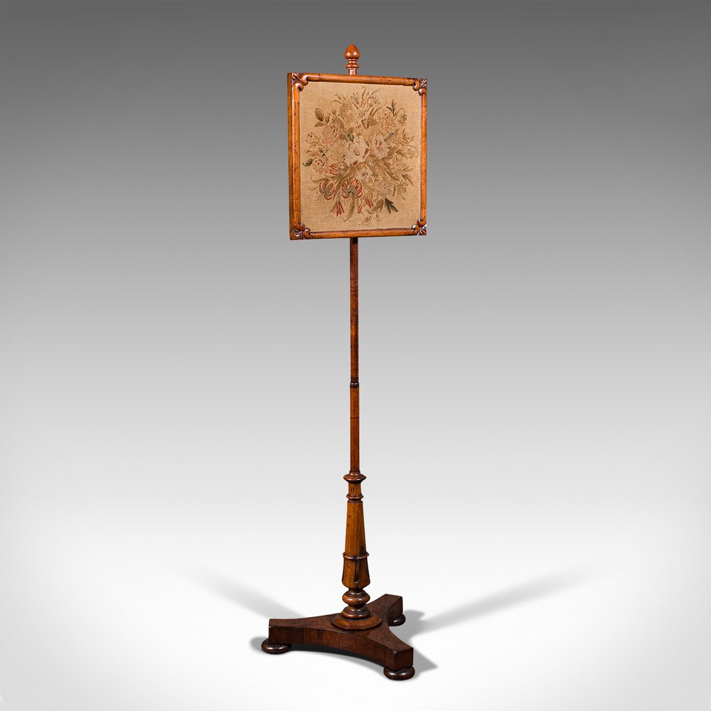Antique Adjustable Pole Screen, English, Fireside