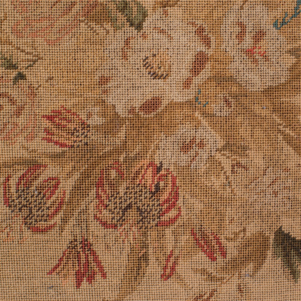 Foliate tapestry mounted in a square frame decorated with scrolled leaf corners