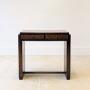 The narrow footprint makes it particularly suitable as a hall table, with a distinctly architectural Art Deco form.