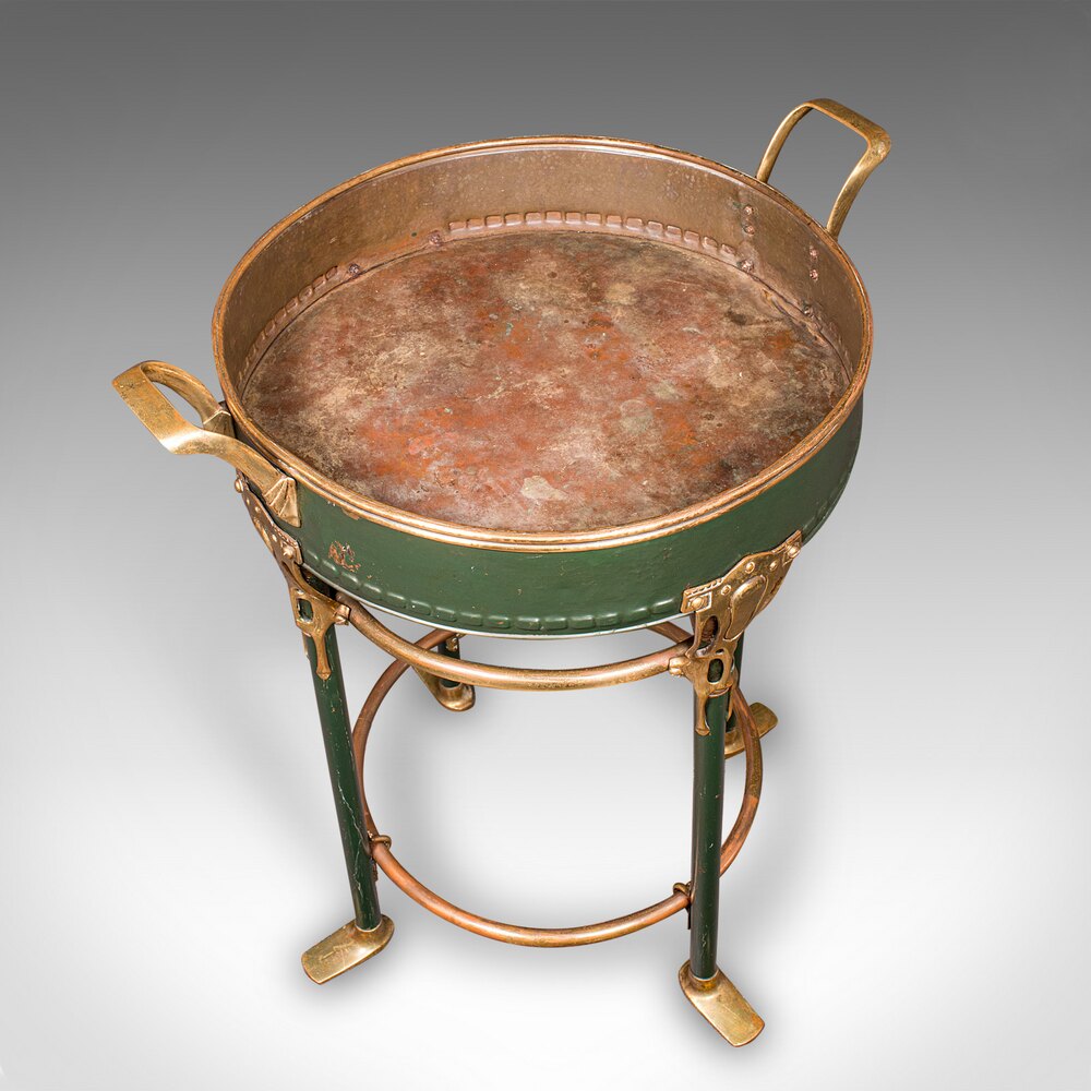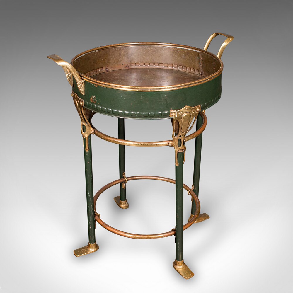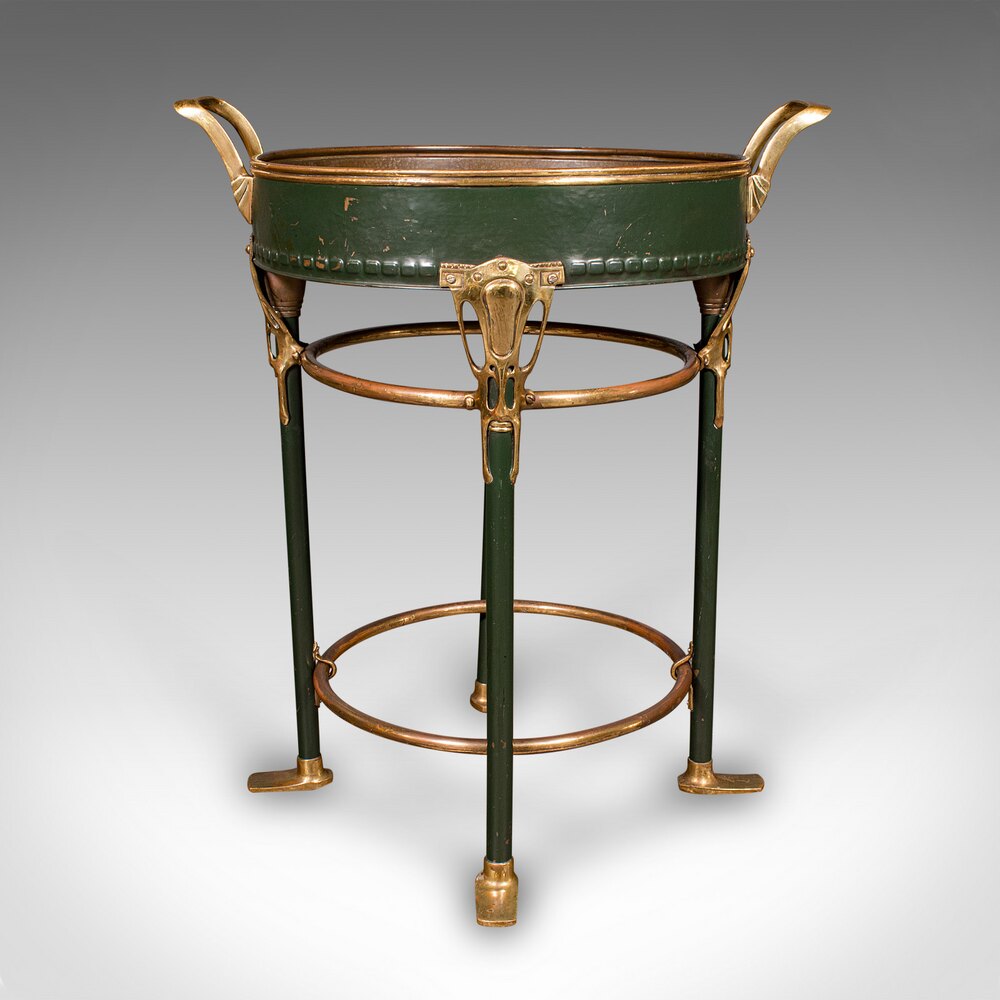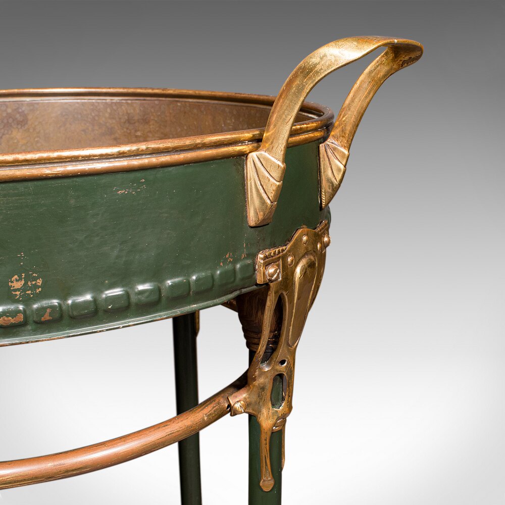 This is an antique bottle cooler, a French, painted brass cocktail party or jardinière stand, dating to the Victorian period, circa 1880. A charming and distinctive centrepiece, equally suited to hosting champagne as it is displaying seasonal foliage.