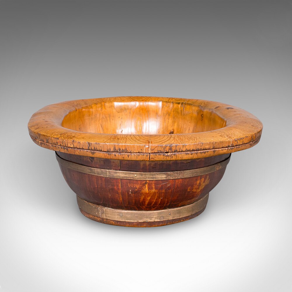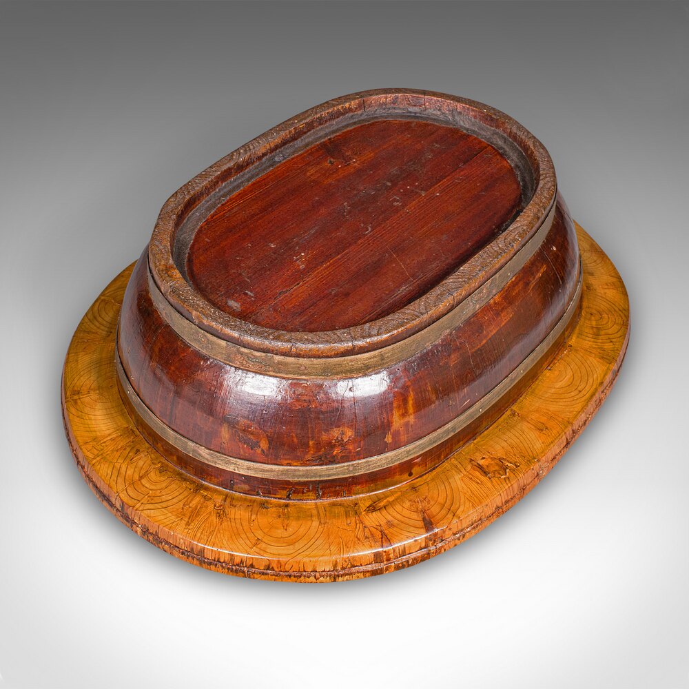 This is an antique boulangerie display basket. A French, cedar and brass produce merchandising dish or stand, dating to the late Victorian period, circa 1900. A charming piece of retail history, equally suited to decorative home use.