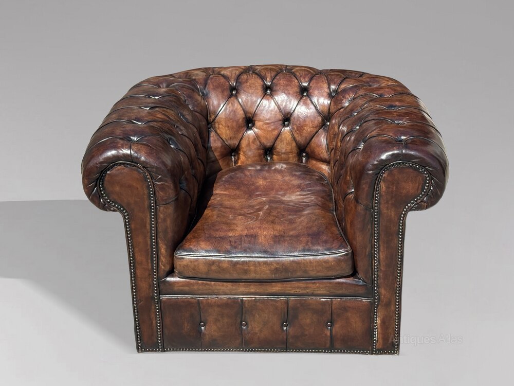 Stunning Quality Early 20th Century Brown Leather Chesterfield Armchair