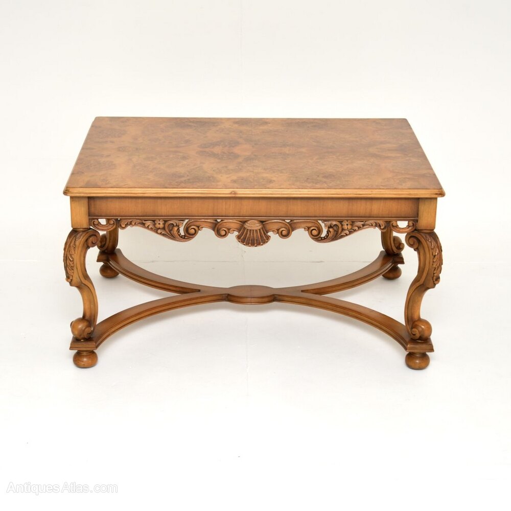 A beautiful and extremely well made antique burr walnut coffee table in the Queen Anne style. This was made in England, it dates from around the 1930’s.