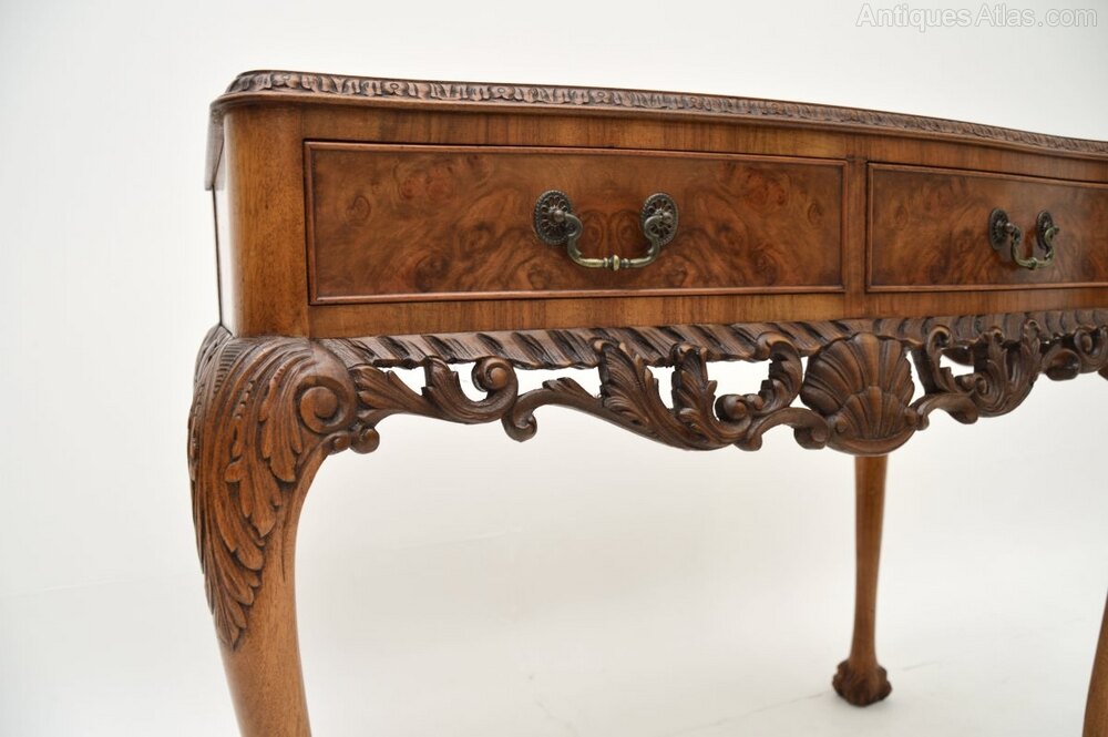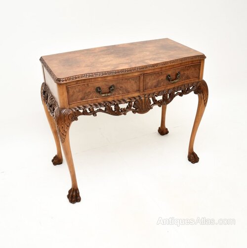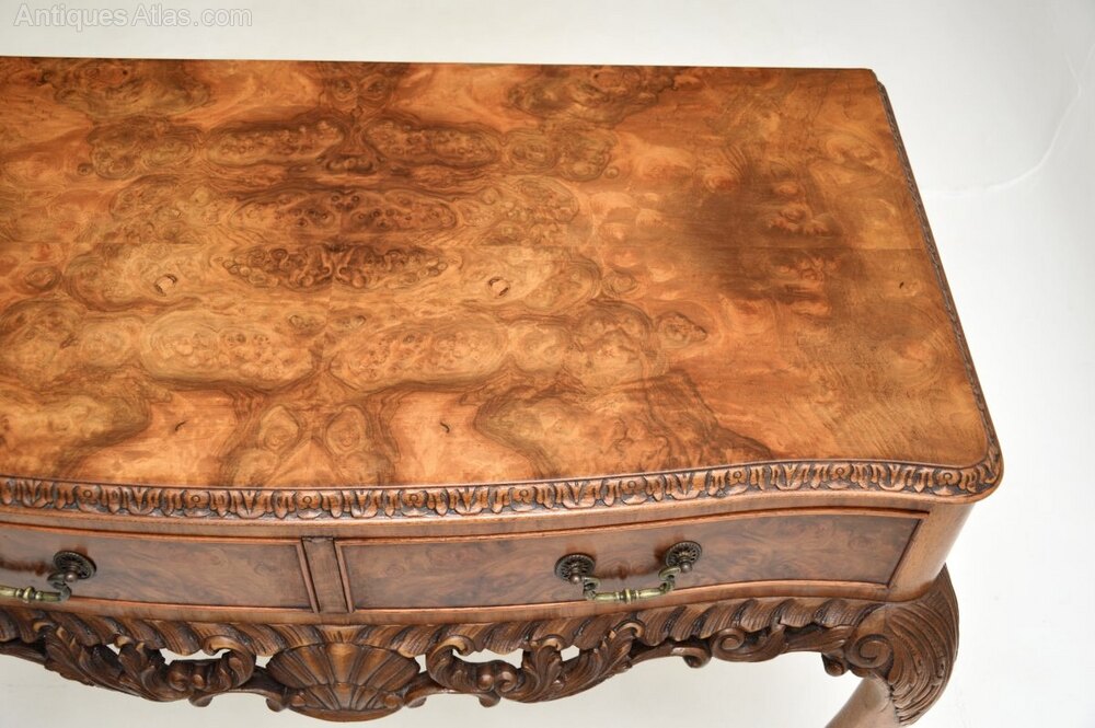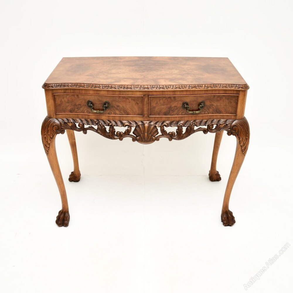 A stunning antique burr walnut console side table in the Queen Anne style. This was made in England, it dates from around the 1920’s.