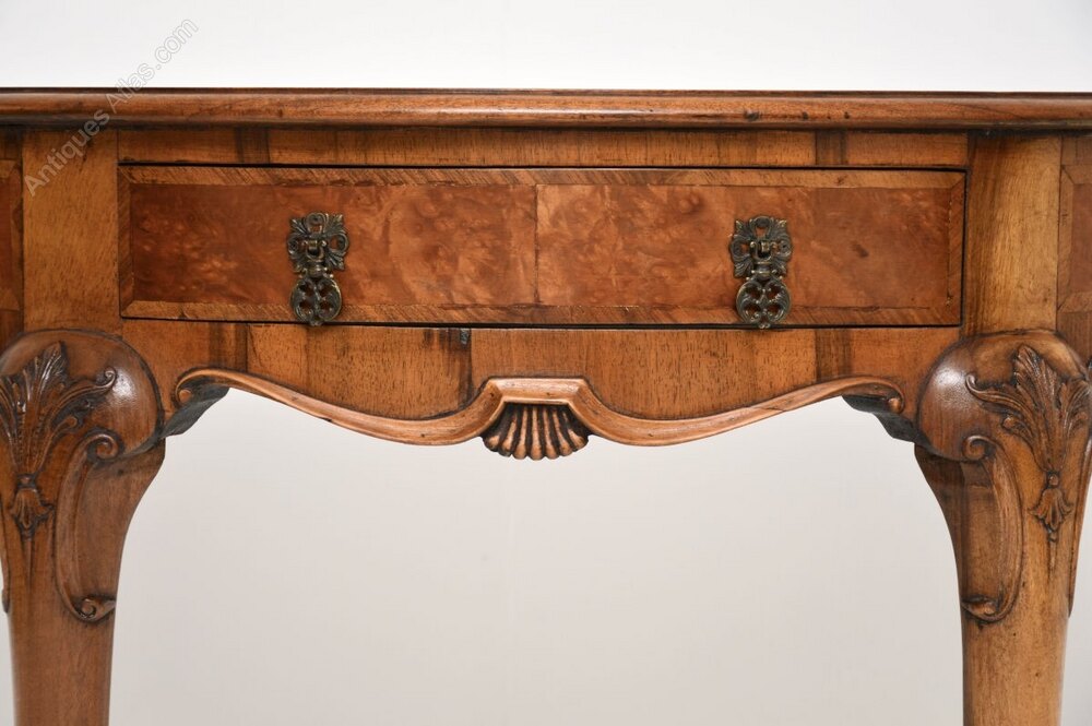 A stunning antique burr walnut console table, made in England and dating from around the 1900-1910 period.