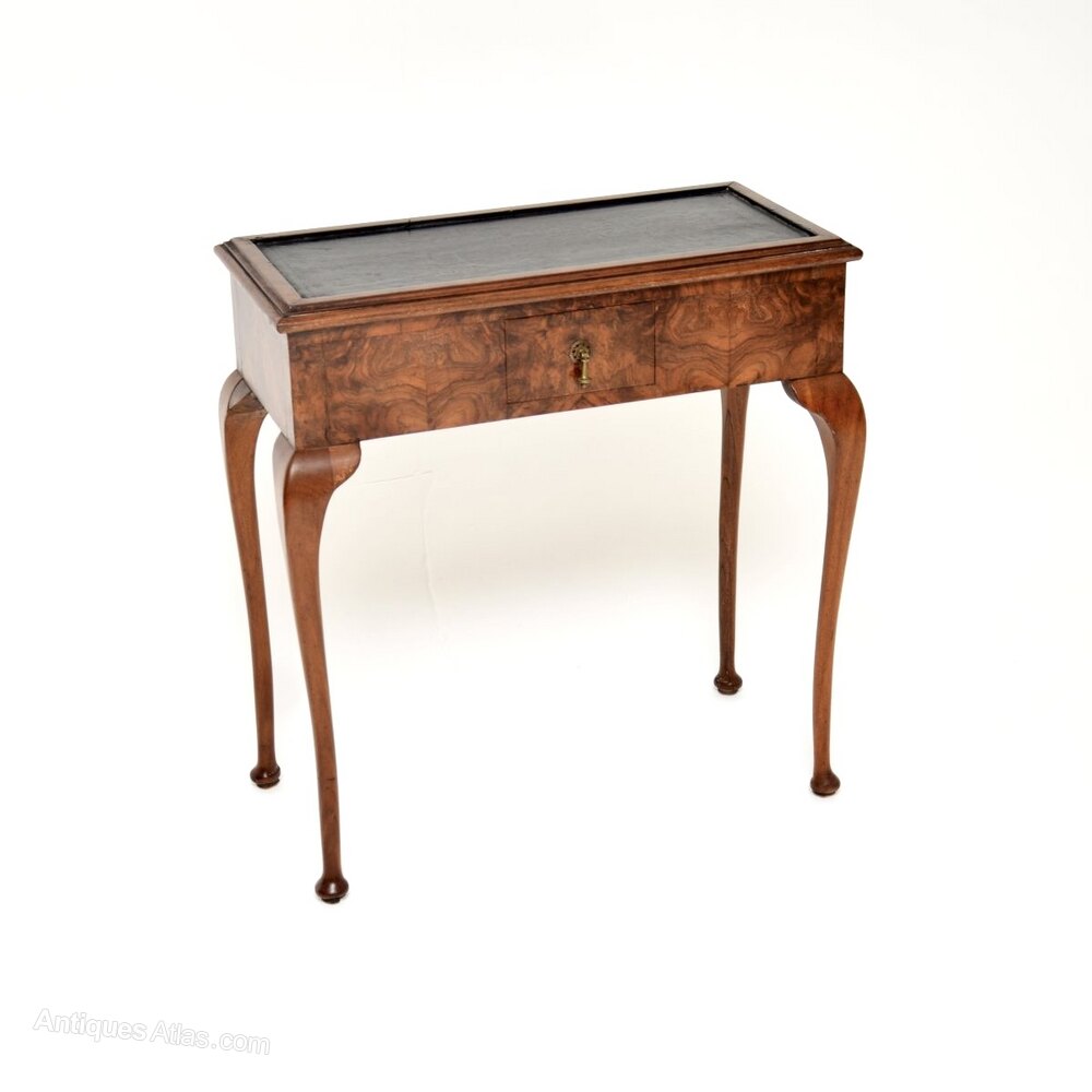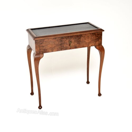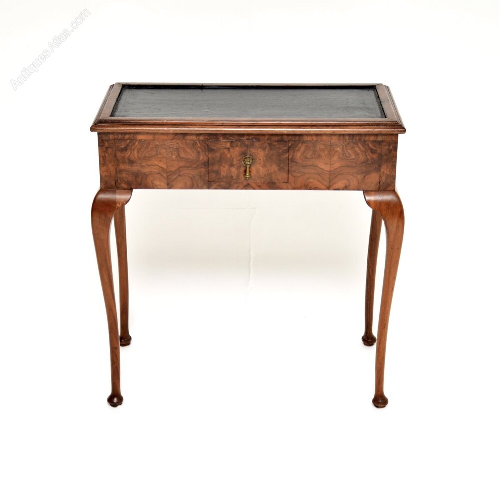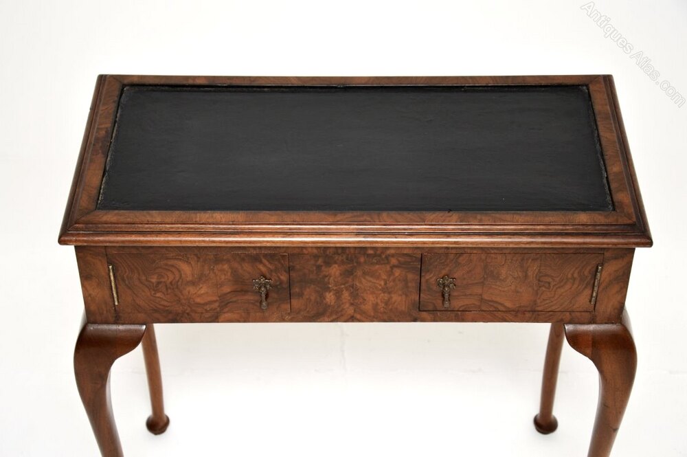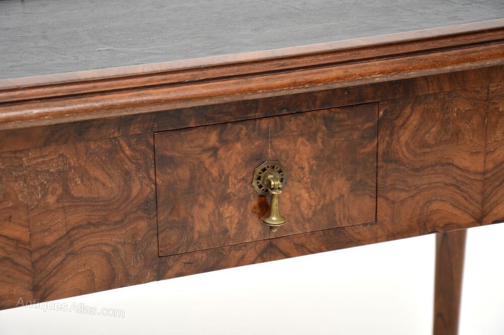Antique Burr Walnut Leather Top Console Table