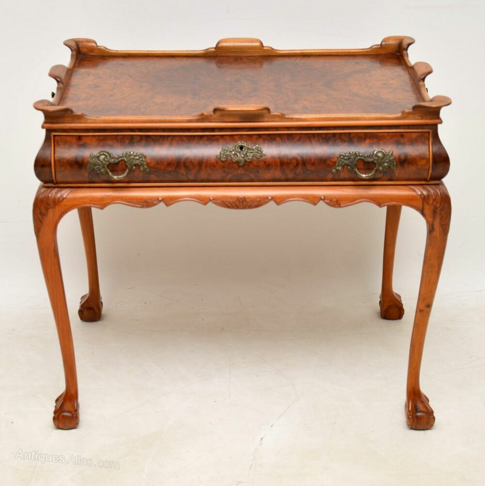 Antique Burr Walnut Tray Top Side Table