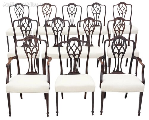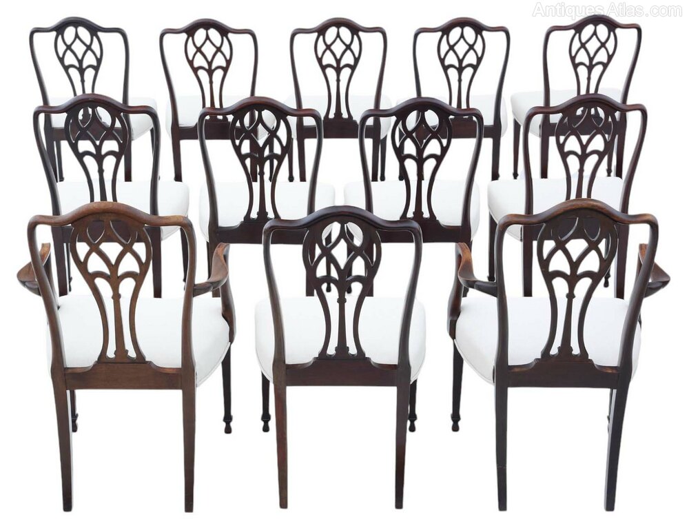 Quality Set of 12 Antique Mahogany Dining Chairs