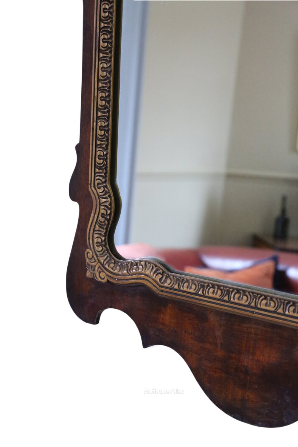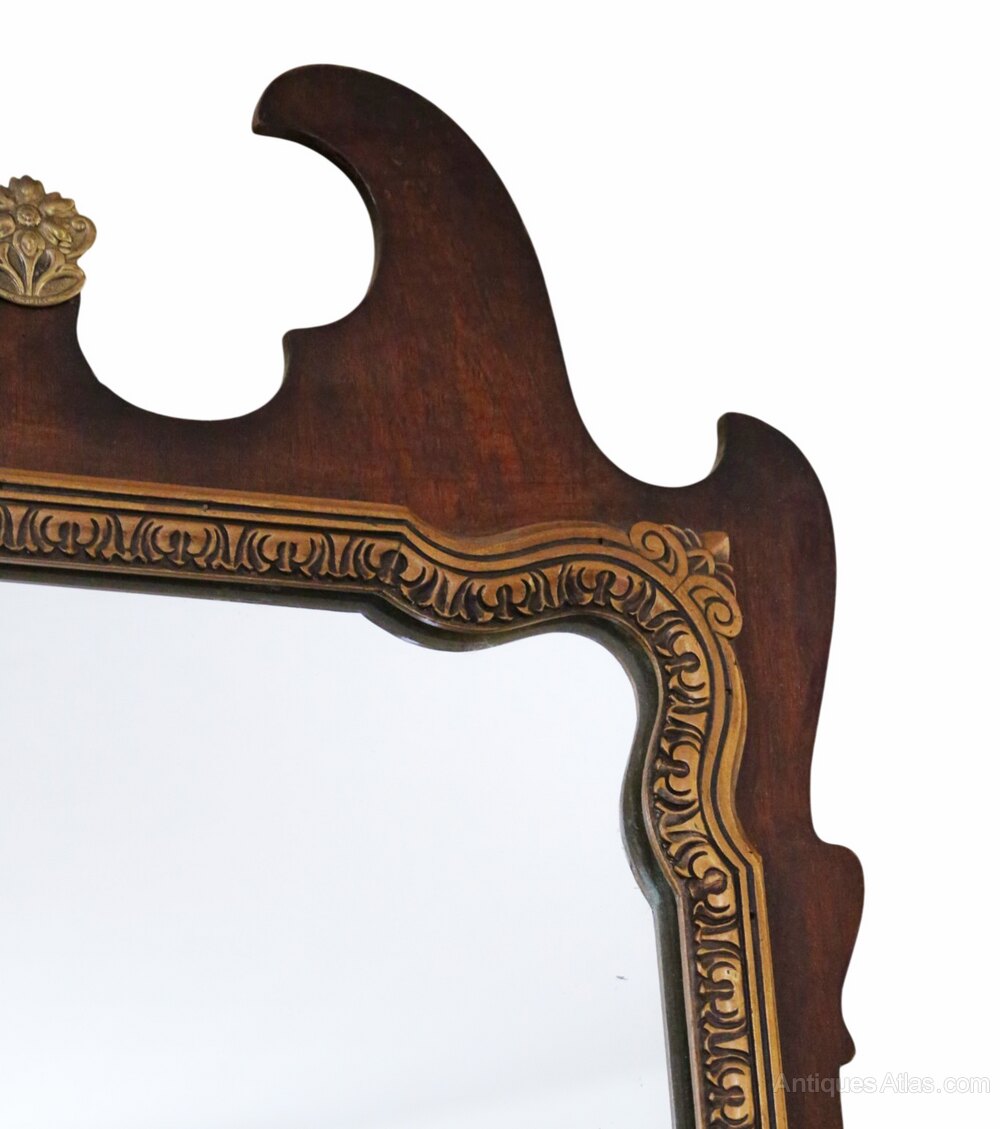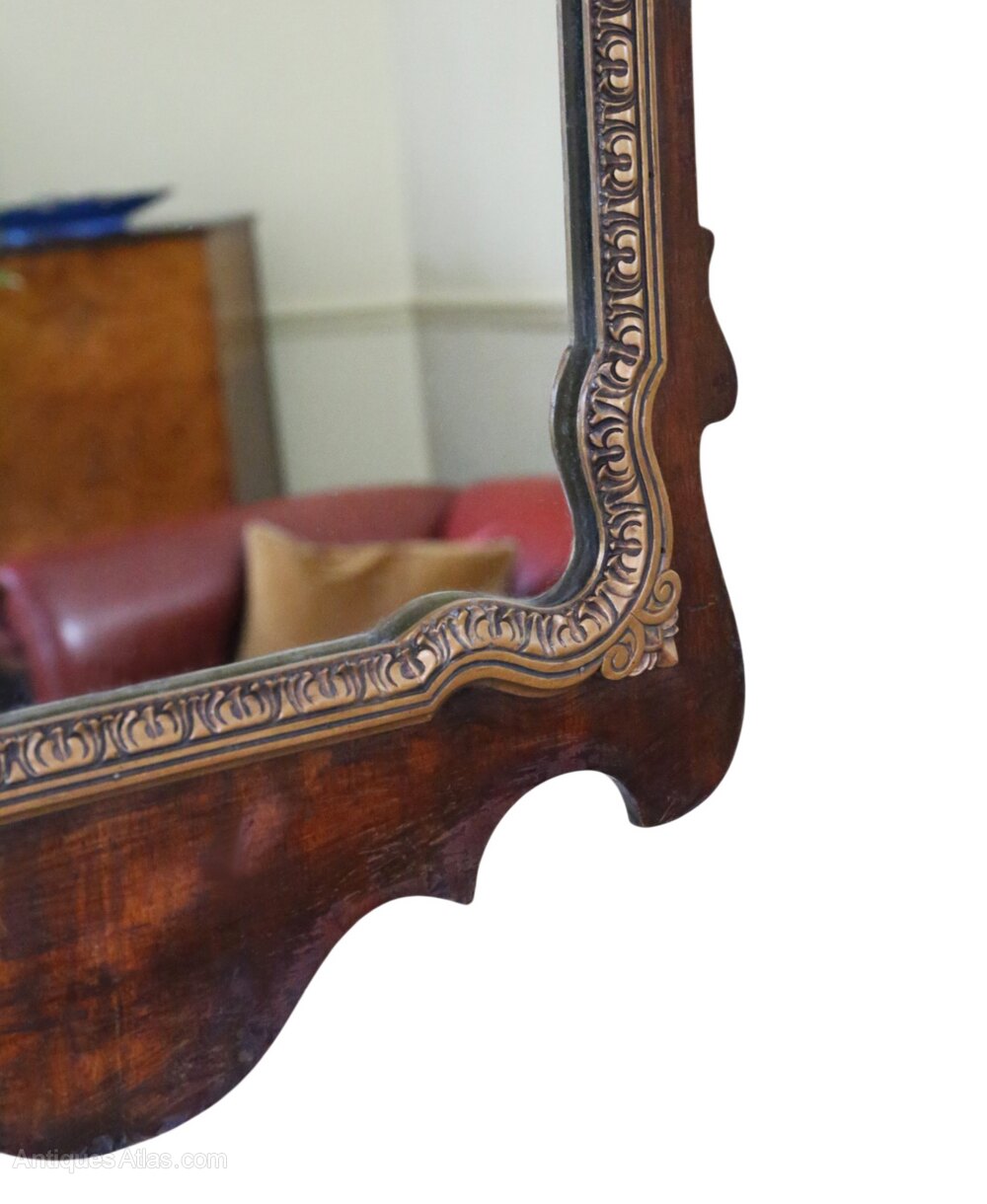 Antique Inlaid & Gilt Mahogany Fretted Wall Mirror