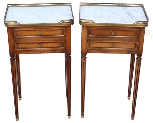 Good Pair of French Walnut & Marble Bedside Cabinets