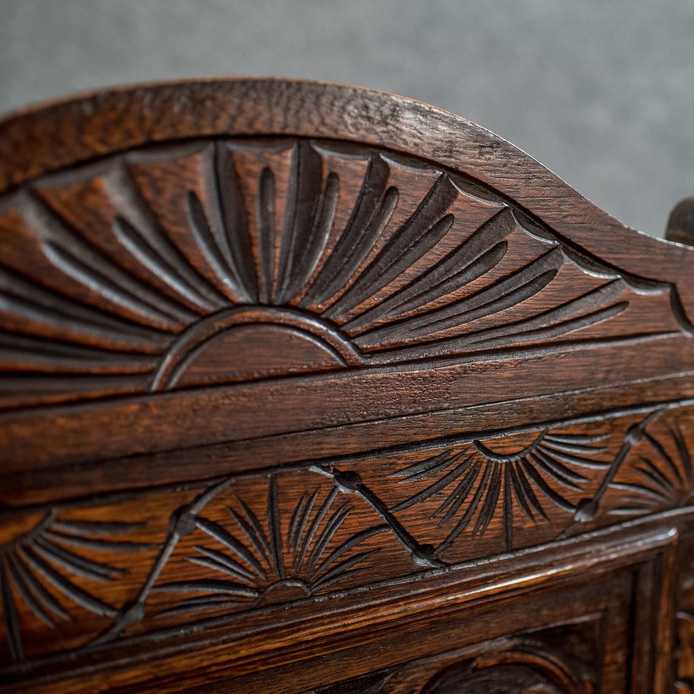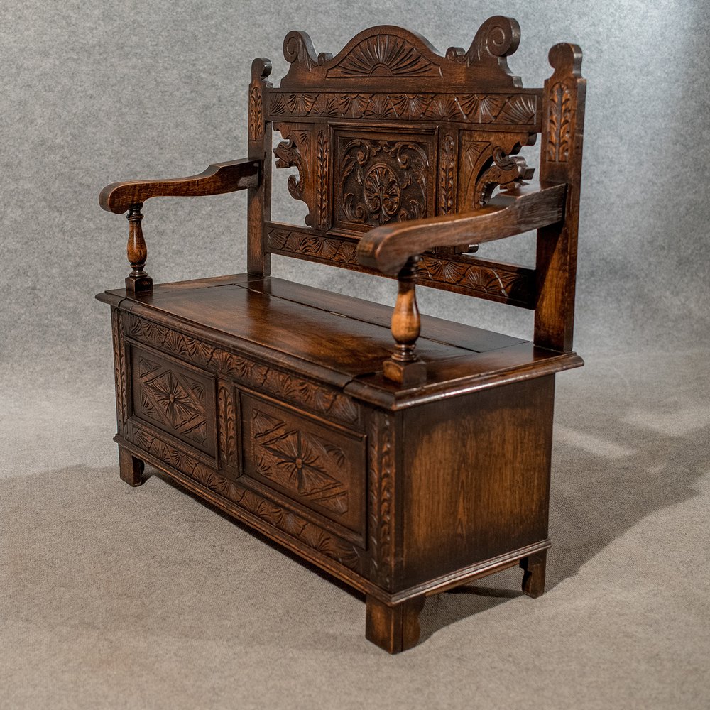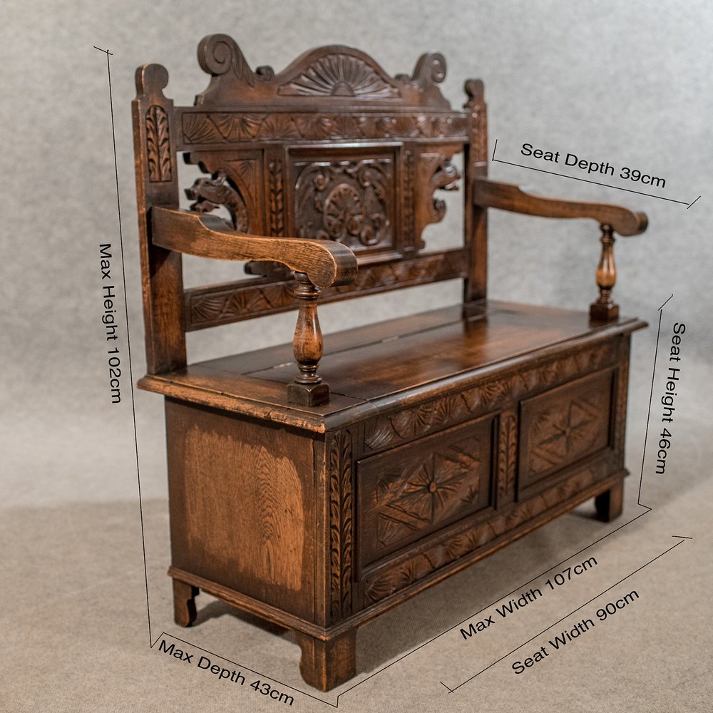 Antique Carved Oak Settle Bench Pew Hall Seat