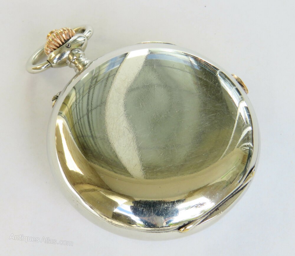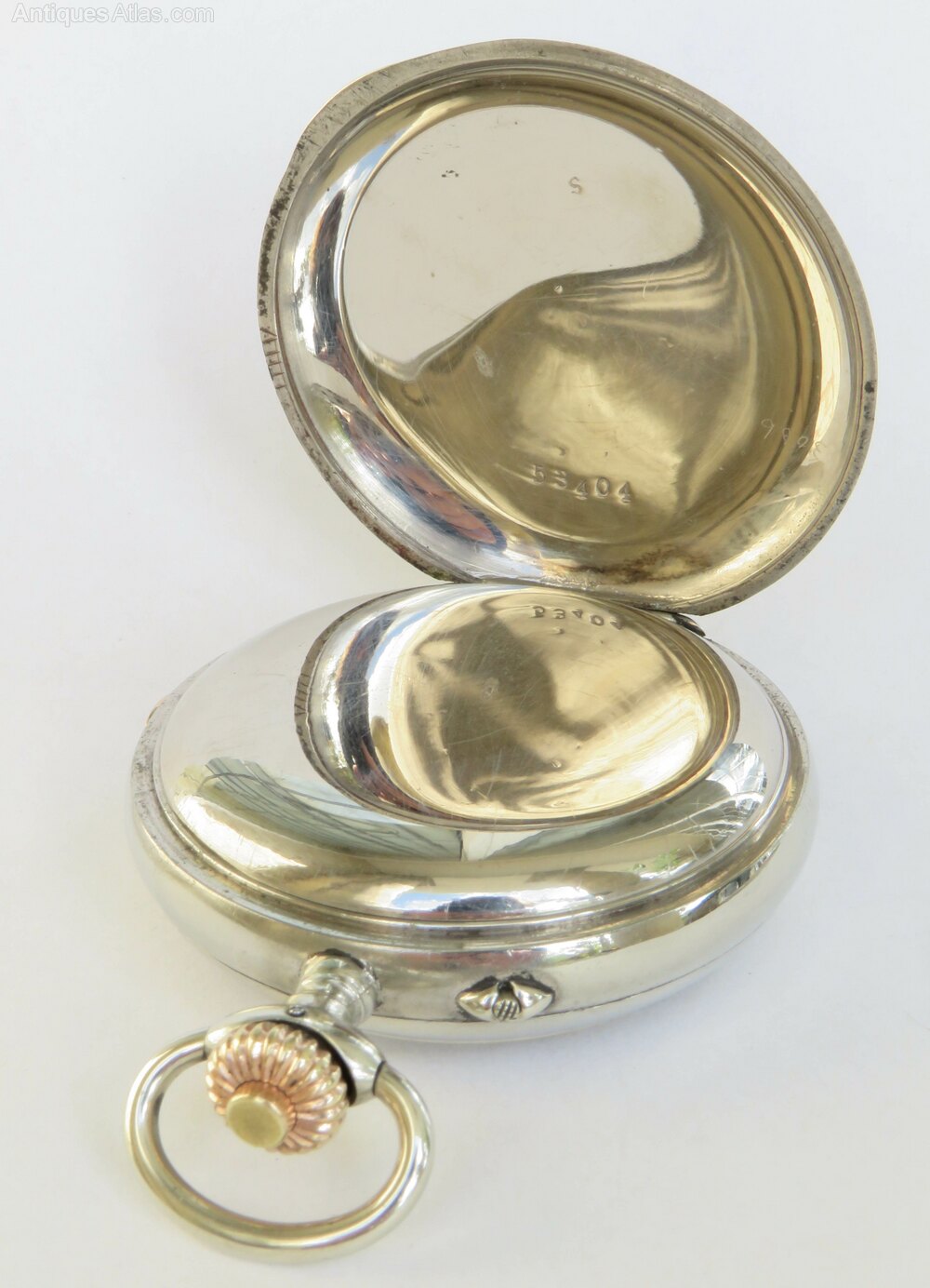 The watch has a stem-winding movement which is working nicely. The movement is protected by an inner hinged cover.