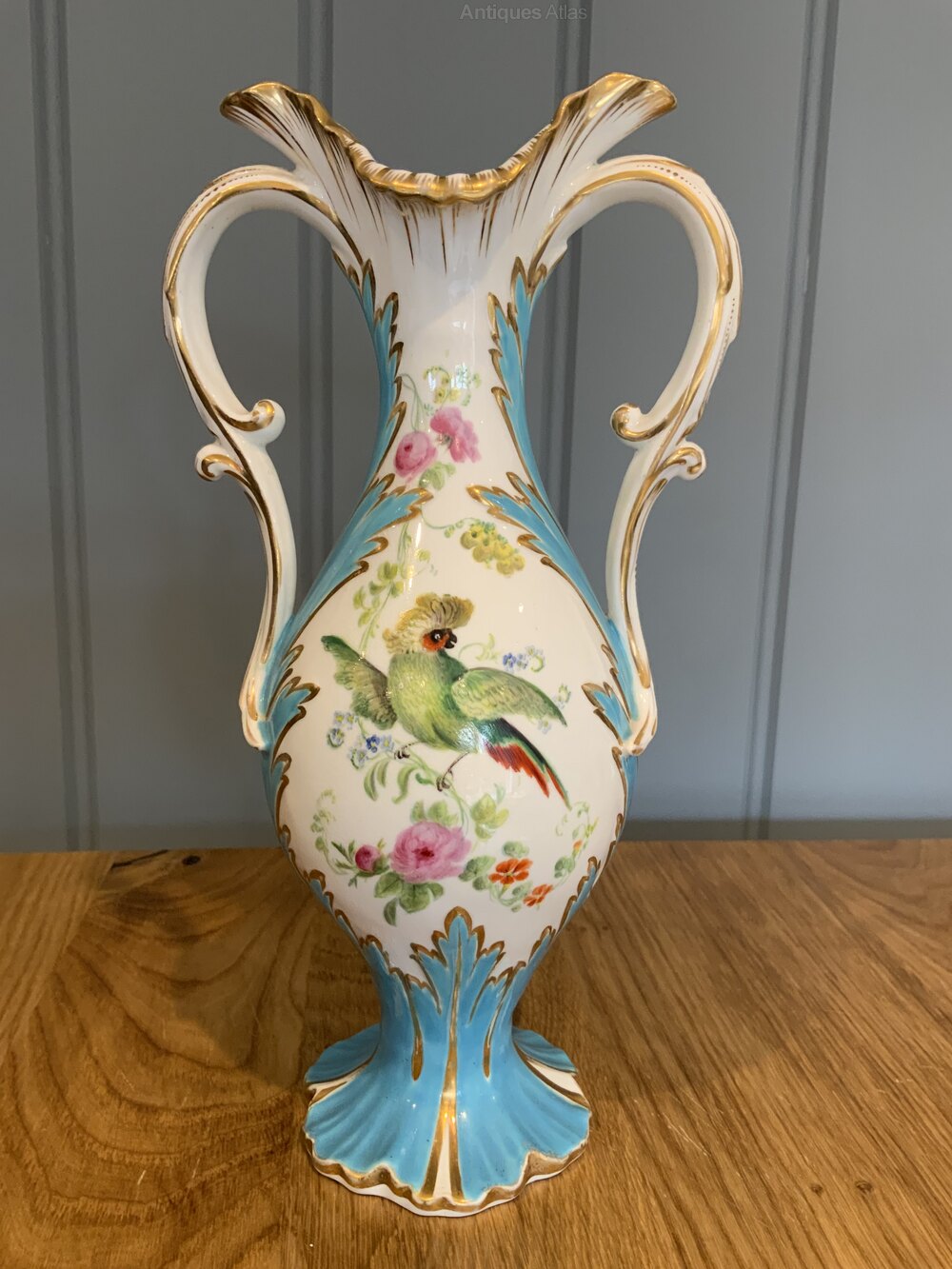Antique Coalport Turquoise Ground Rococo Vase