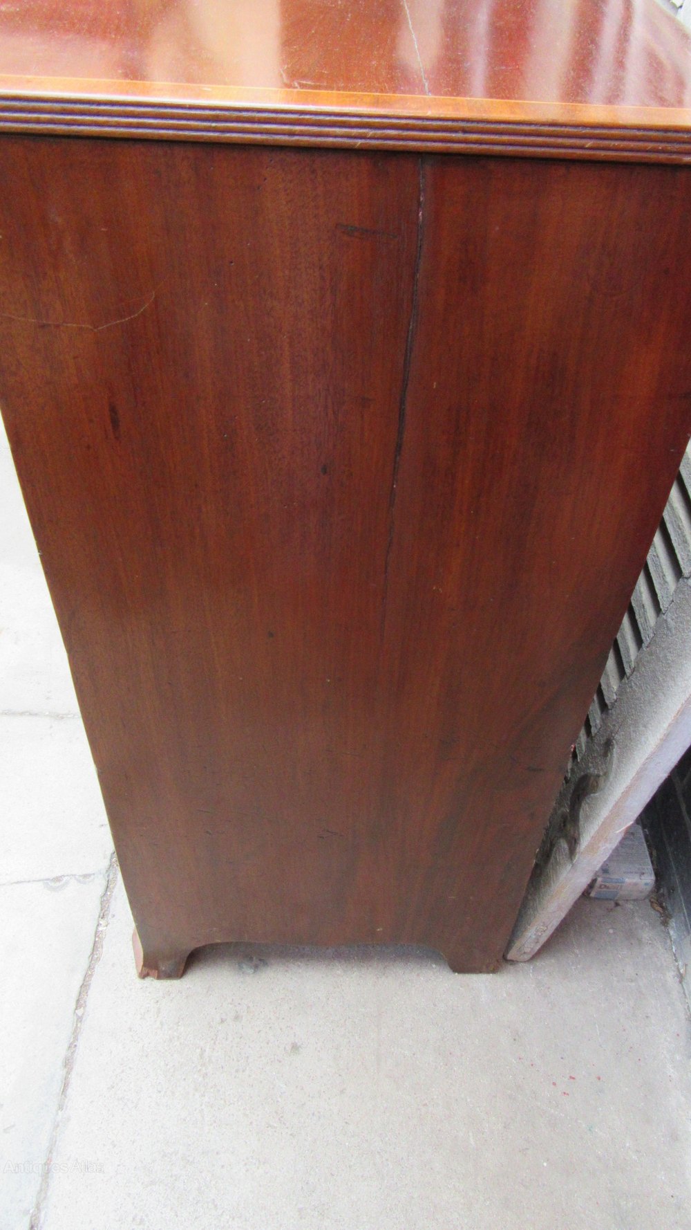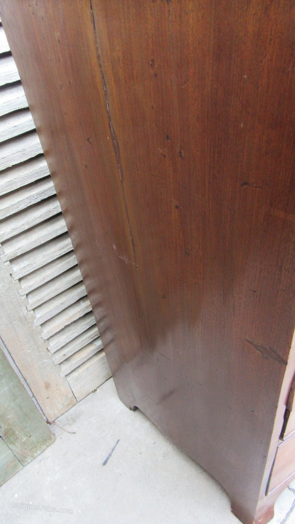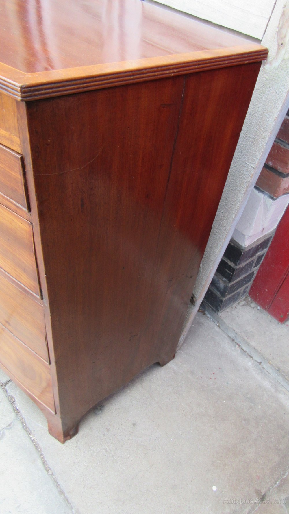 Antique Crossbound Mahogany Bowfront Chest of Drawers with Oak Lining ,Bit of Cock beading missing and a couple of splits in the drawers see pictures ,96 cm high ,107 cm wide,51 cm deep