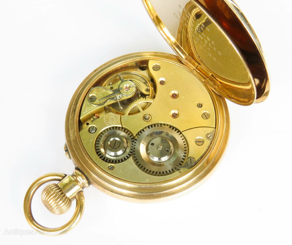 The watch measures 50mm diameter excluding the winding stem and the loop. The case is gold plated and it is in good condition, just some unevenness to the hinged case back.
