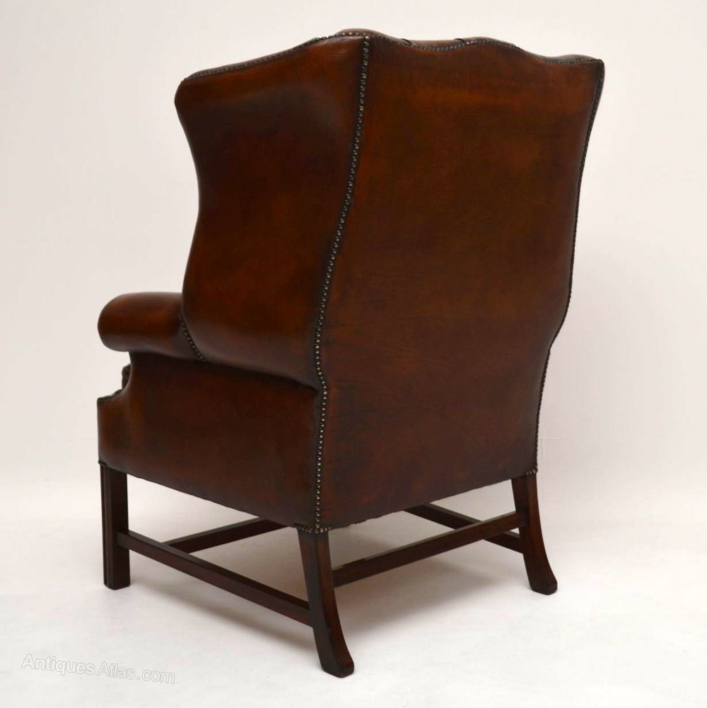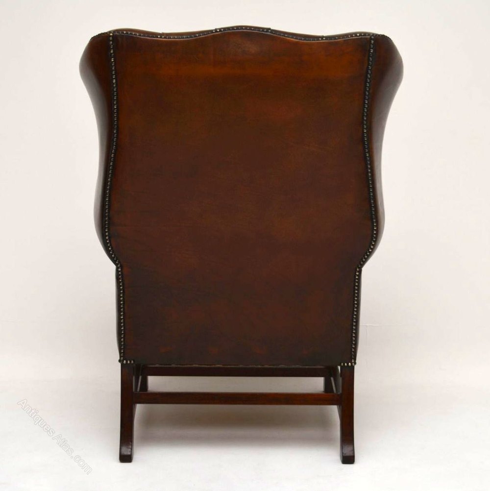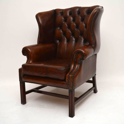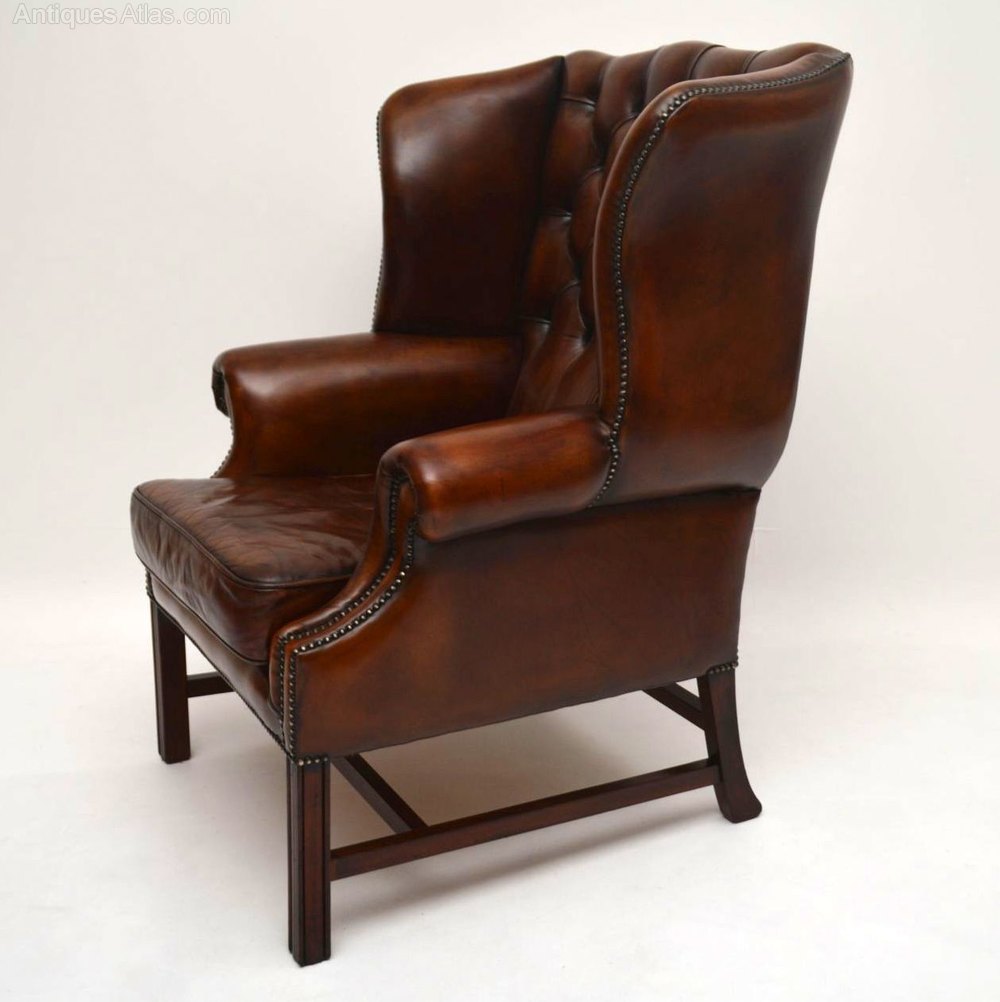 Antique Deep Buttoned Leather Wing Back Armchair