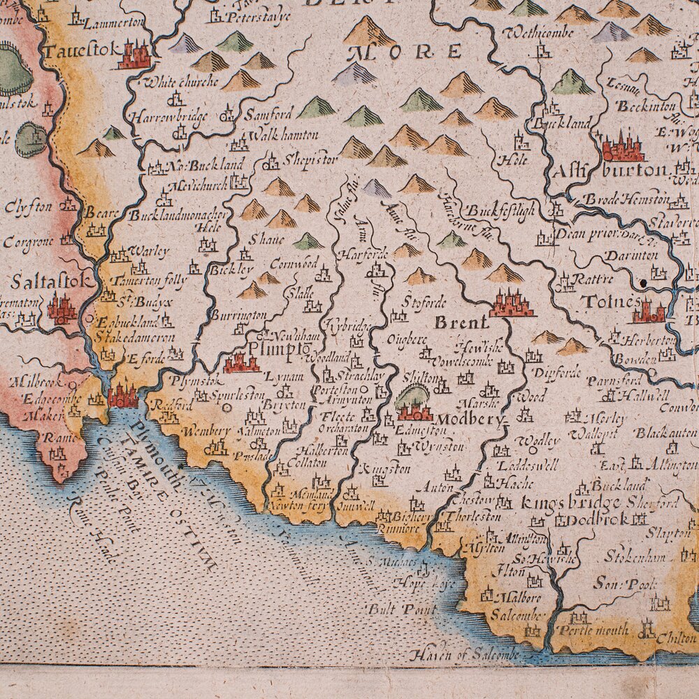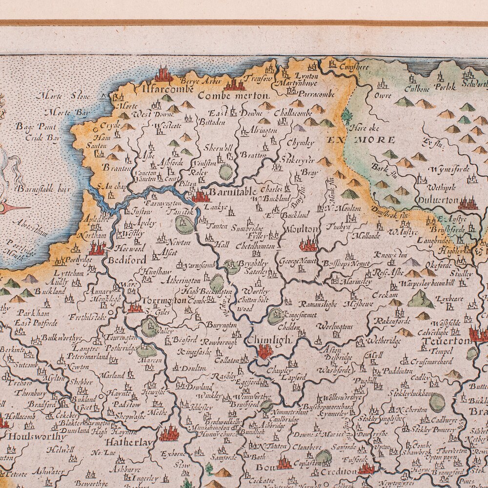 This antique county map is a superb 17th century map engraving, offering historic Devon interest and classic decorative appeal. Perfect for collectors of antique cartography or regional history delivered ready to display.