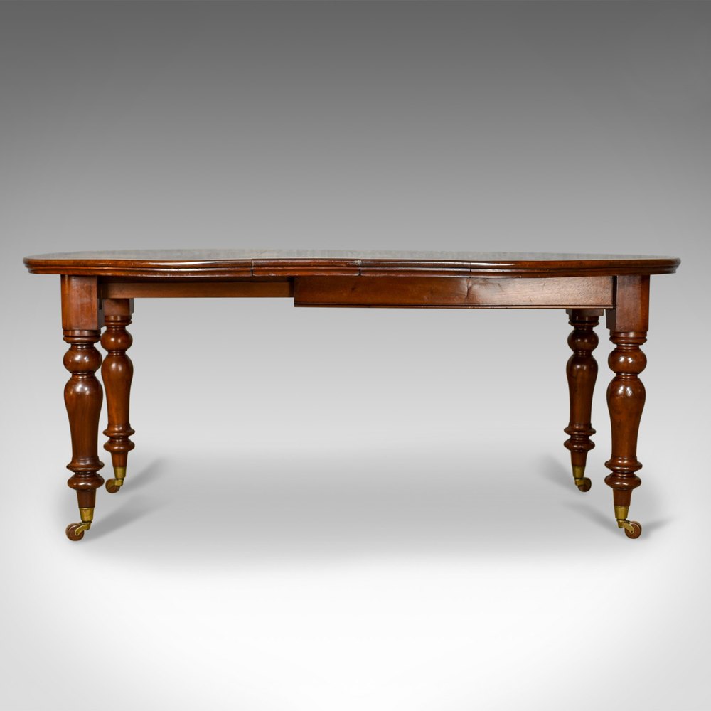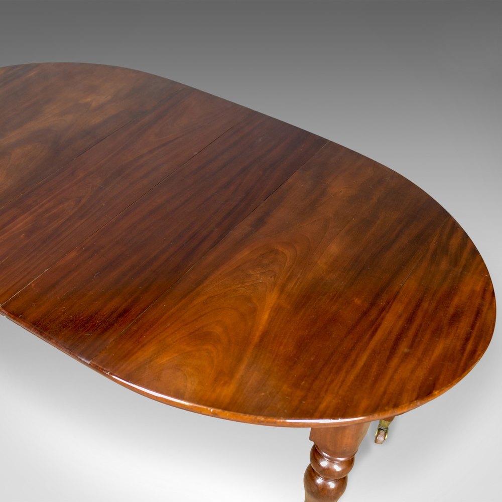 This is an antique dining table, an English, Victorian, mahogany extending table. A six seater dating to the mid 19th century, circa 1850.