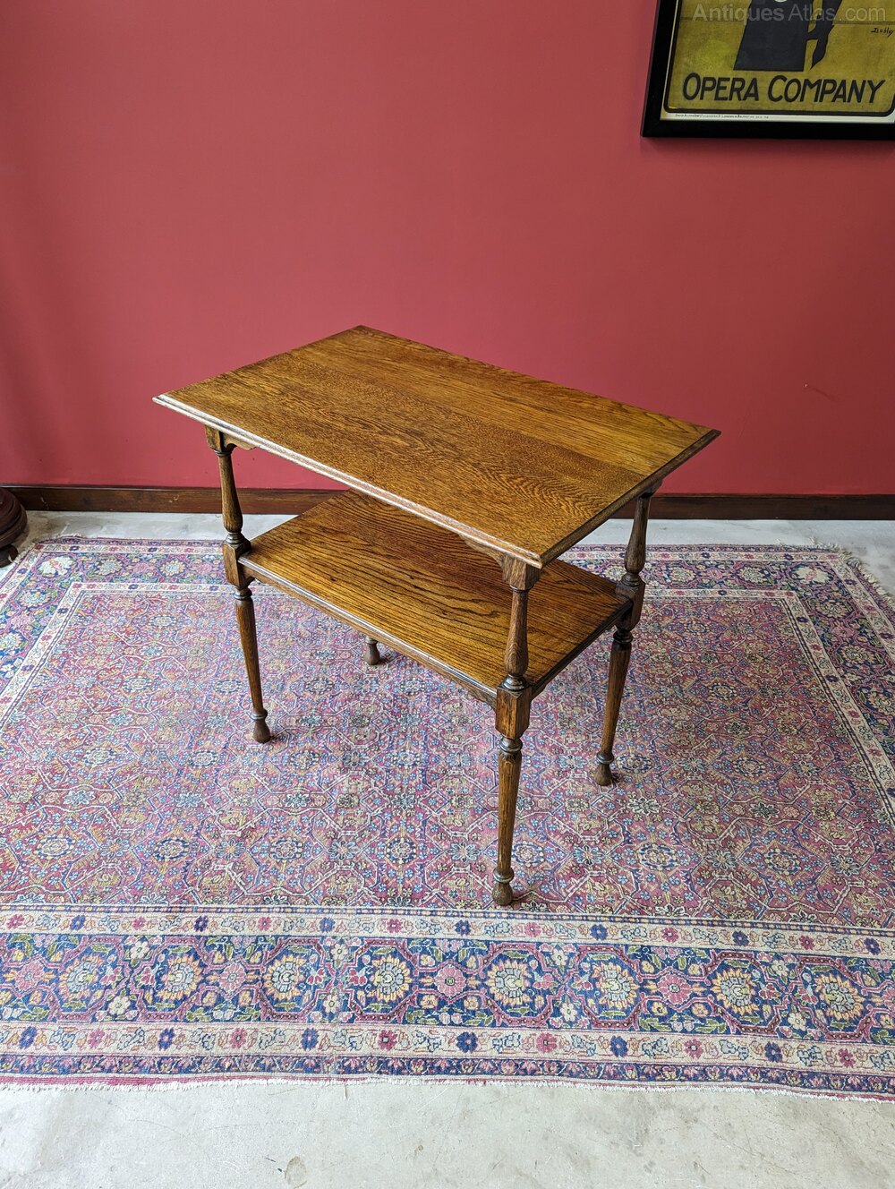 Antique Early 20th Century Oak Two Tier Side Table
