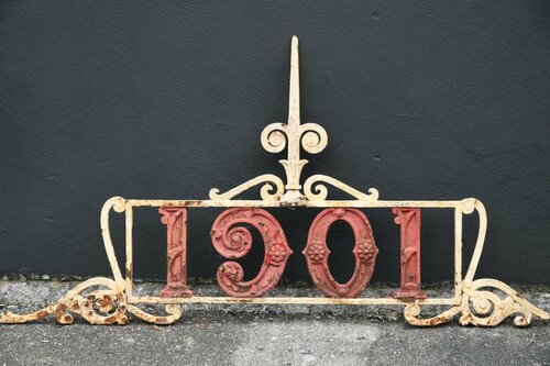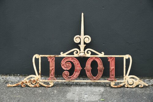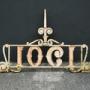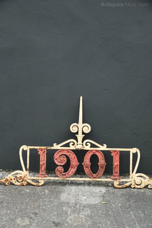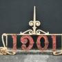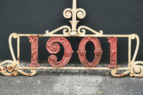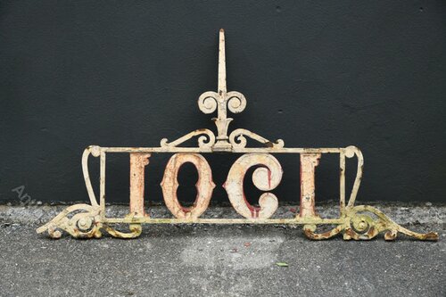 Antique Edwardian Cast Iron Gate Overthrow . Antique decorative cast iron scrolled metalwork gate crest.