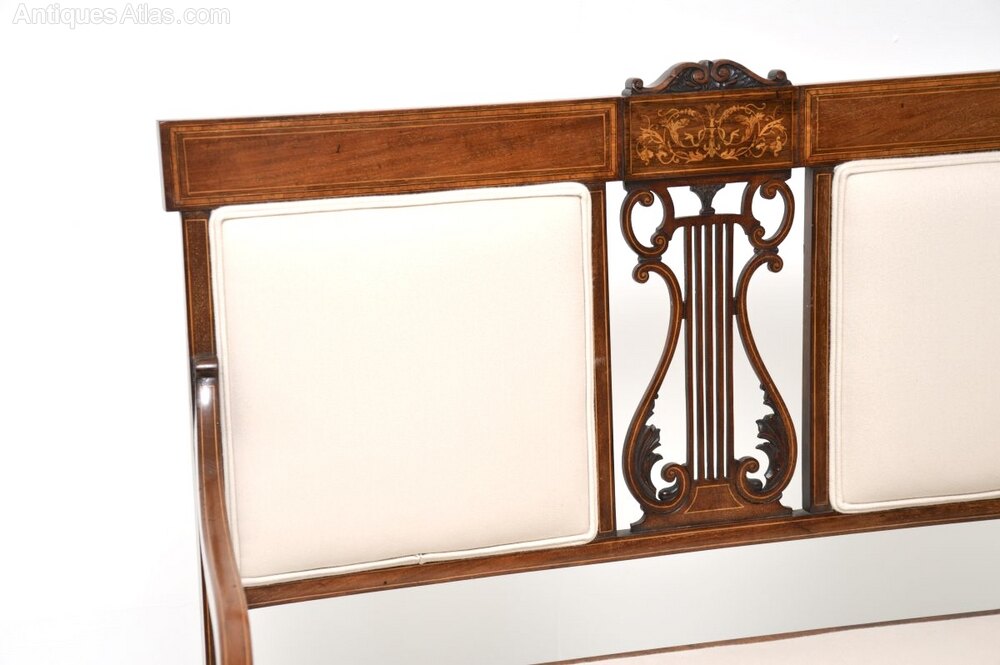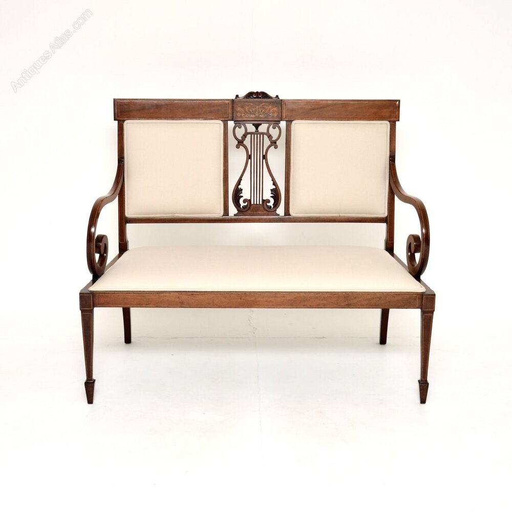 Antique Edwardian Inlaid Mahogany Settee