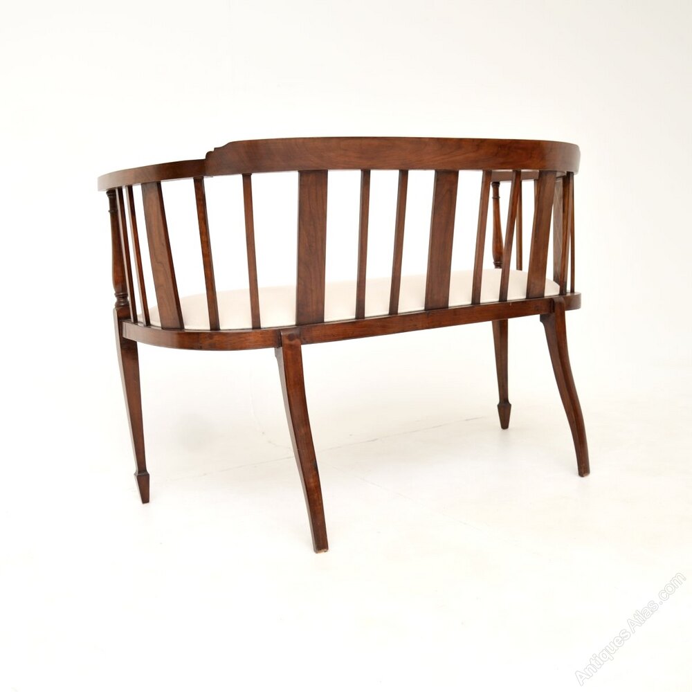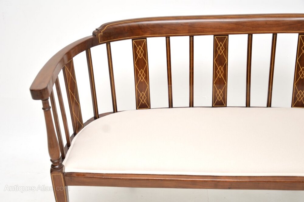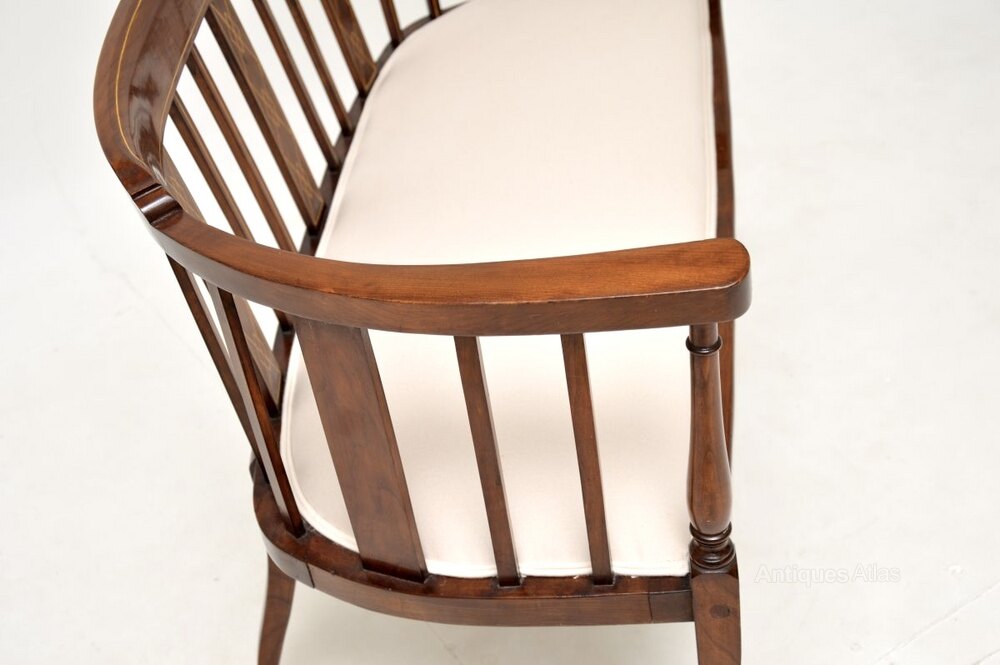 Antique Edwardian Inlaid Walnut Settee