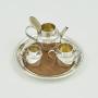 The teapot measures 2.9cm (1 1/8") high, 4.5cm (1 3/4") spout to handle and 2.3cm (7/8") wide. The sugar and creamer are both 2cm (3/4") high and the tray is 7cm (2 3/4") wide.
