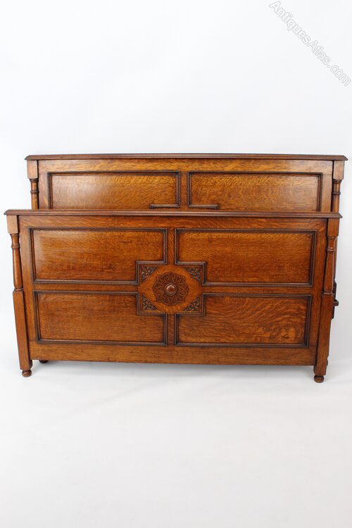 Antique Edwardian Oak Double Bed Vono Bedstead