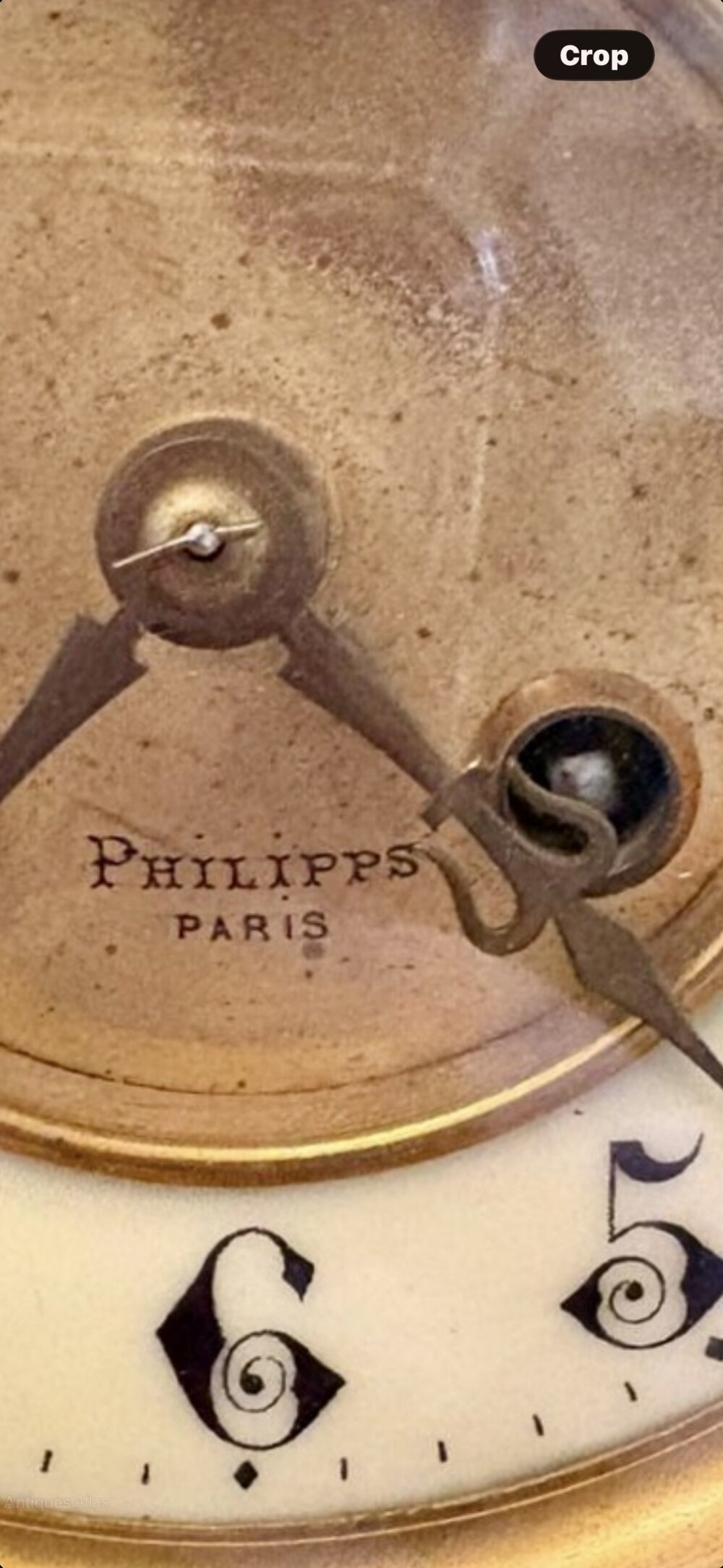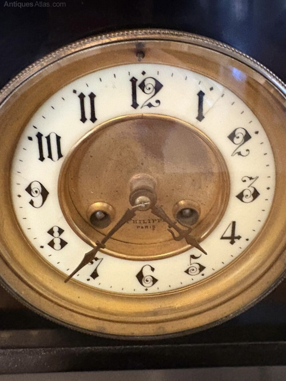 The enamel dial is signed by Philippes Paris, a 19th century Paris retailer associated with high quality French movements produced in the capital of European clockmaking. During this period Paris workshops supplied movements not only across France but throughout England where they were prized for their accuracy, durability and ease of maintenance. Retailers such as Philippes selected and finished these movements and often supplied them to the better end of the market.