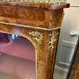 The tops are finished with bold burr walnut panels framed by crossbanding and set beneath finely cast ormolu galleries. The ormolu mounts are of excellent quality with crisp casting and intricate foliate designs to the corners, friezes and bases, adding contrast and a strong sense of luxury against the warmth of the walnut.