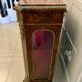 Each cabinet is fitted with a glazed door enclosing shelved interiors, traditionally lined in a deep red fabric to enhance the display of silver and decorative objects. In the Victorian period pier cabinets such as these were placed in drawing rooms or reception rooms, often flanking a fireplace, used to display prized possessions while reflecting light and adding depth to the room.
