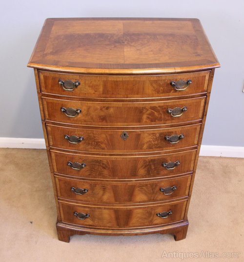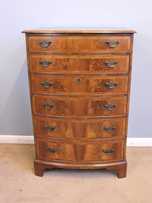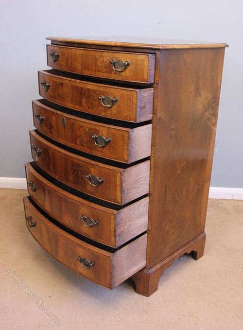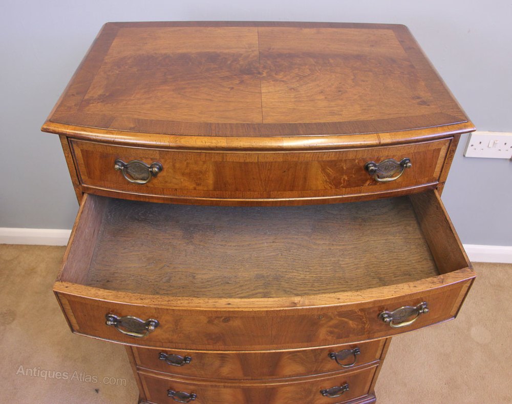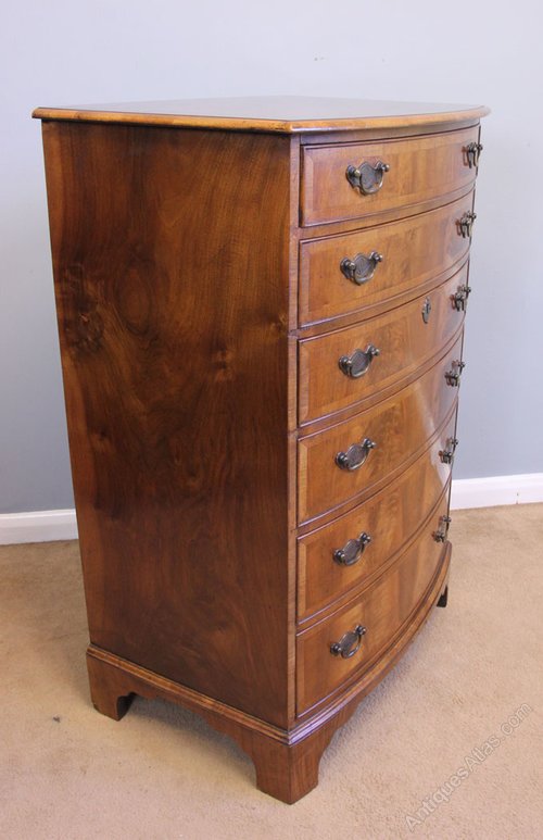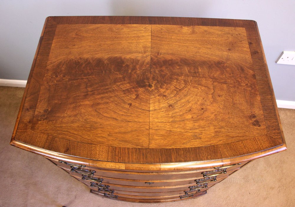 Antique Figured Walnut Bow Front Chest of Drawers