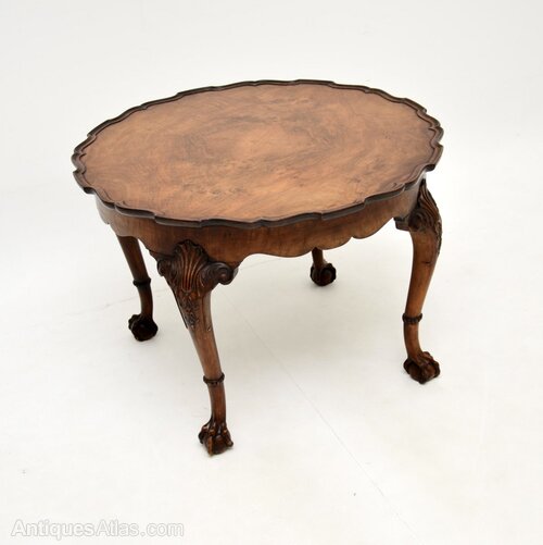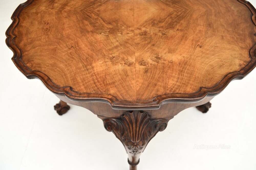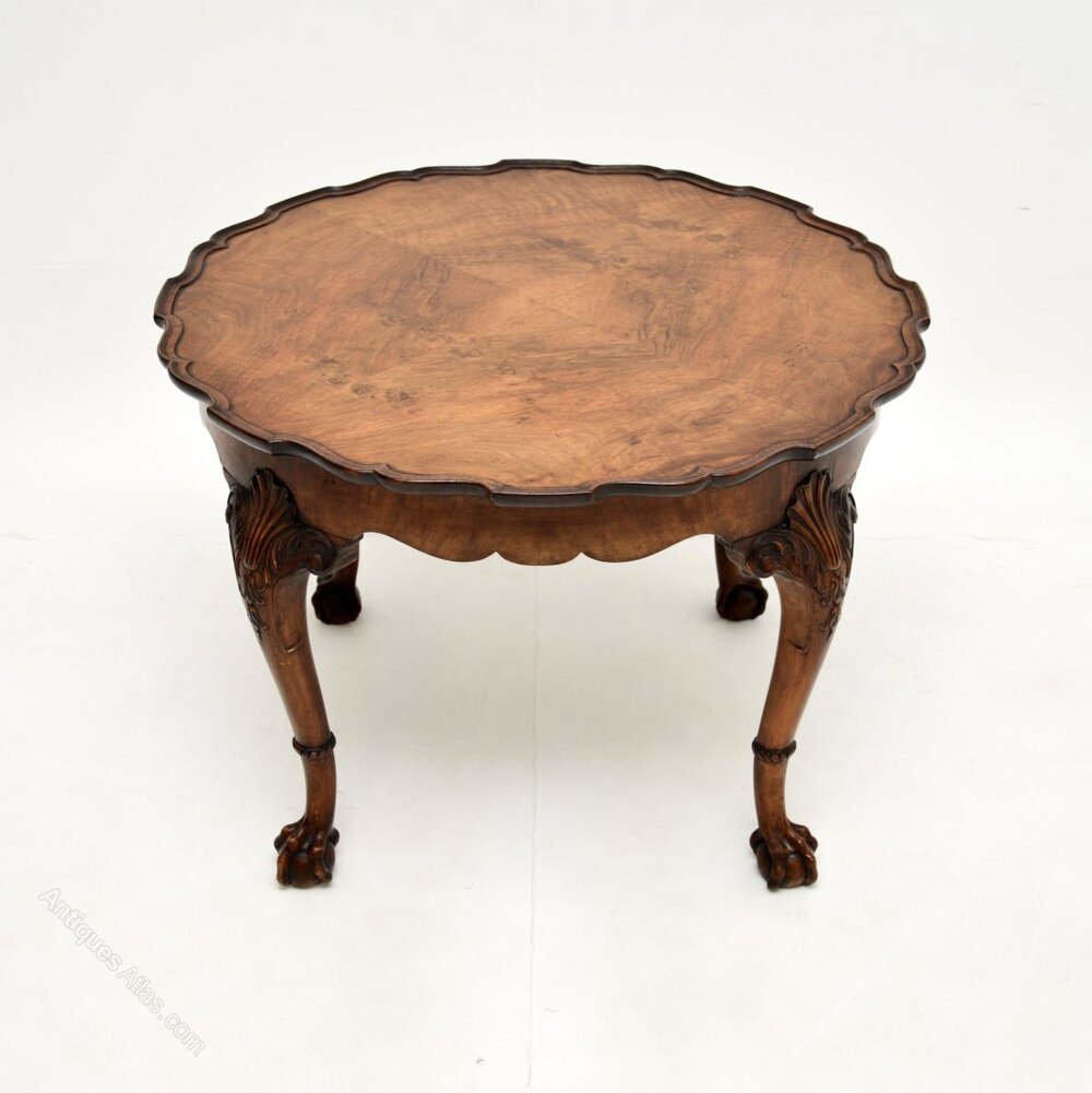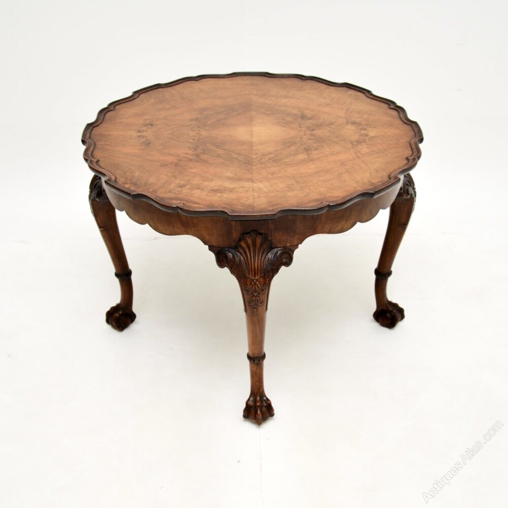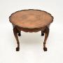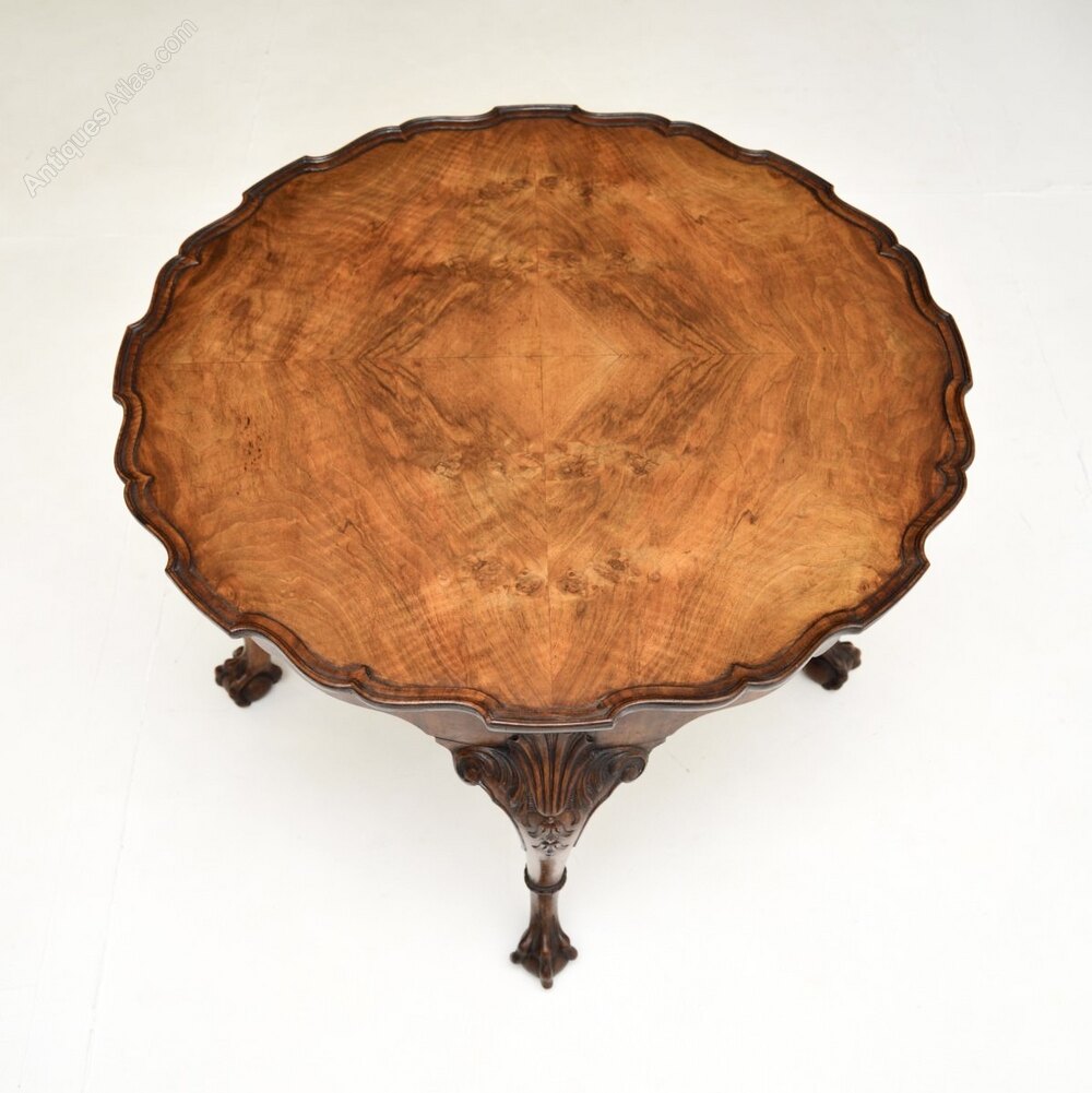 A fantastic antique figured walnut pie crust coffee table. This was made in England, it dates from the 1920’s.