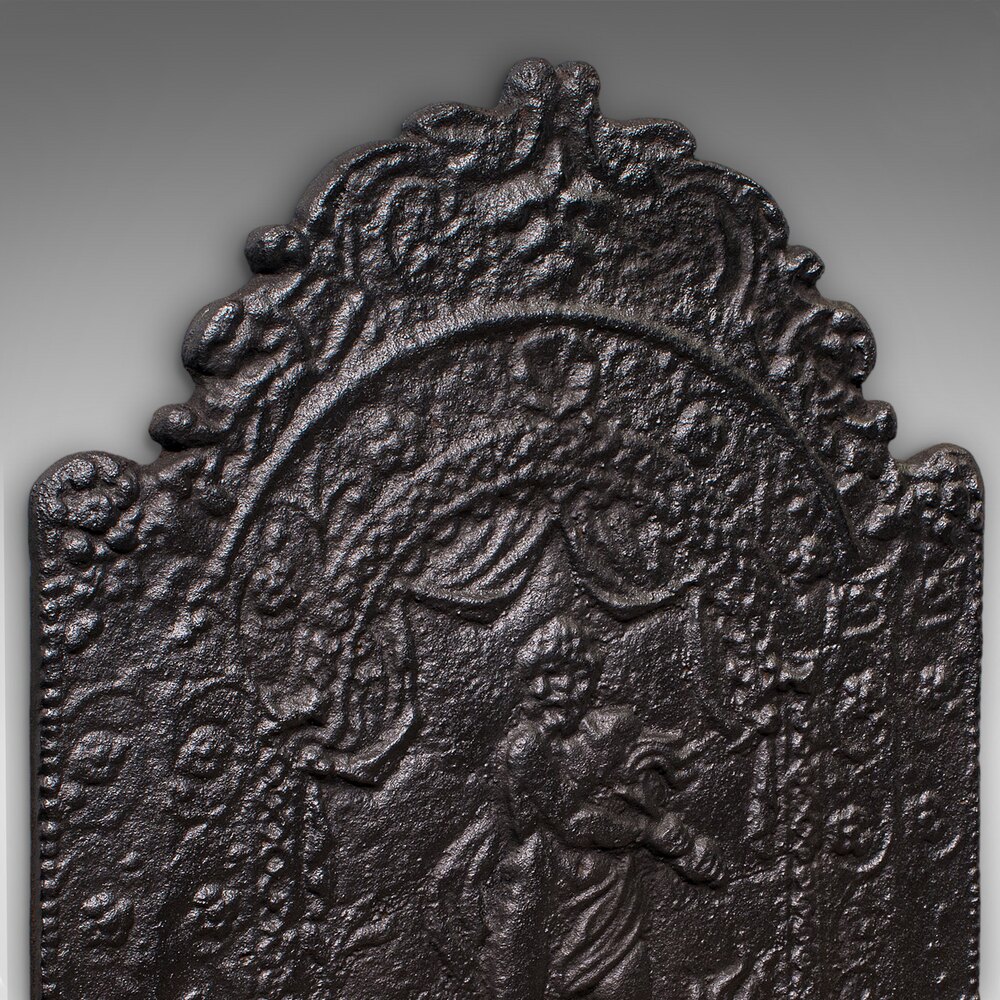 Antique Relief Fire Back, English, Fireplace, Iron
