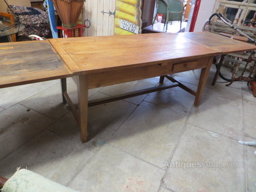 Antique French Fruitwood Draw Leaf Dining Table with extra pull out leaf each end .89 cm deep,167 cm long,207 with one leaf 327 cm fully extended,