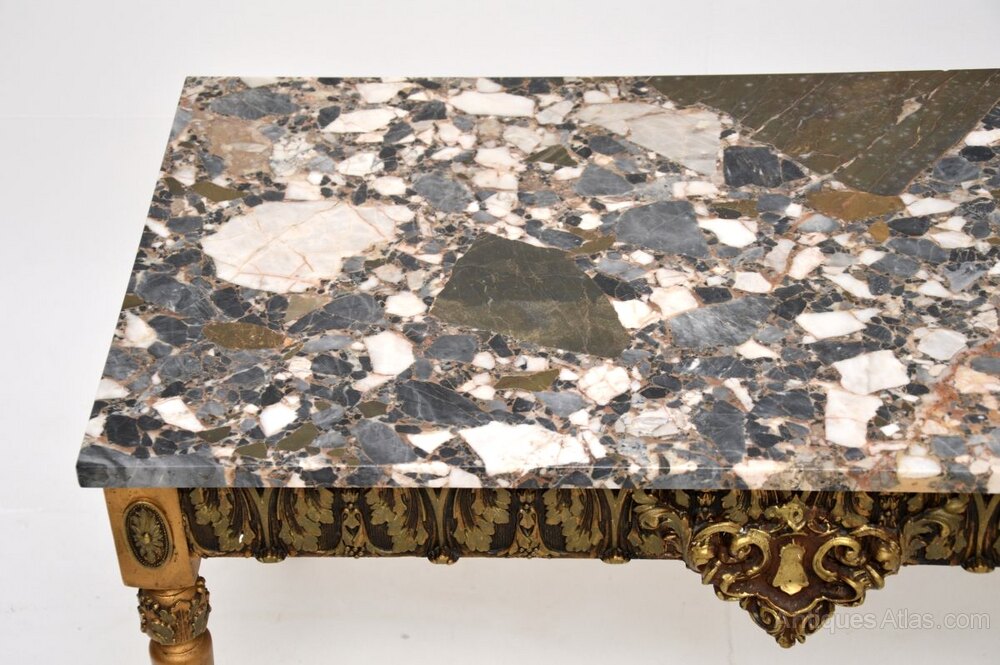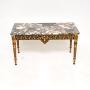 This has a stunning design, the gilt frame is made from solid wood with ornate gesso mouldings. The marble top has gorgeous colour tones and patterns, it lifts off for ease of transport.