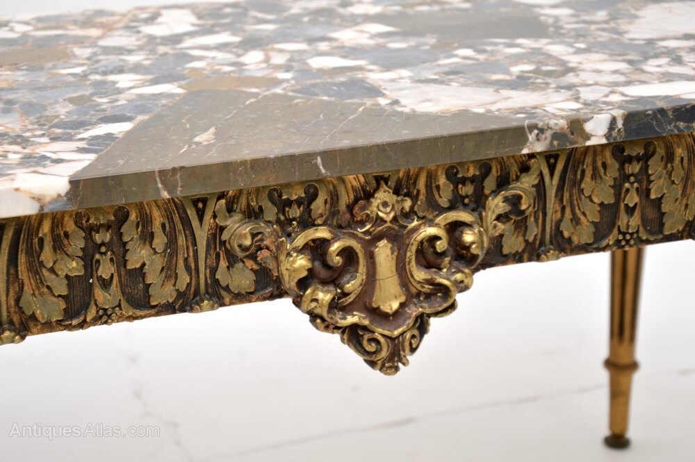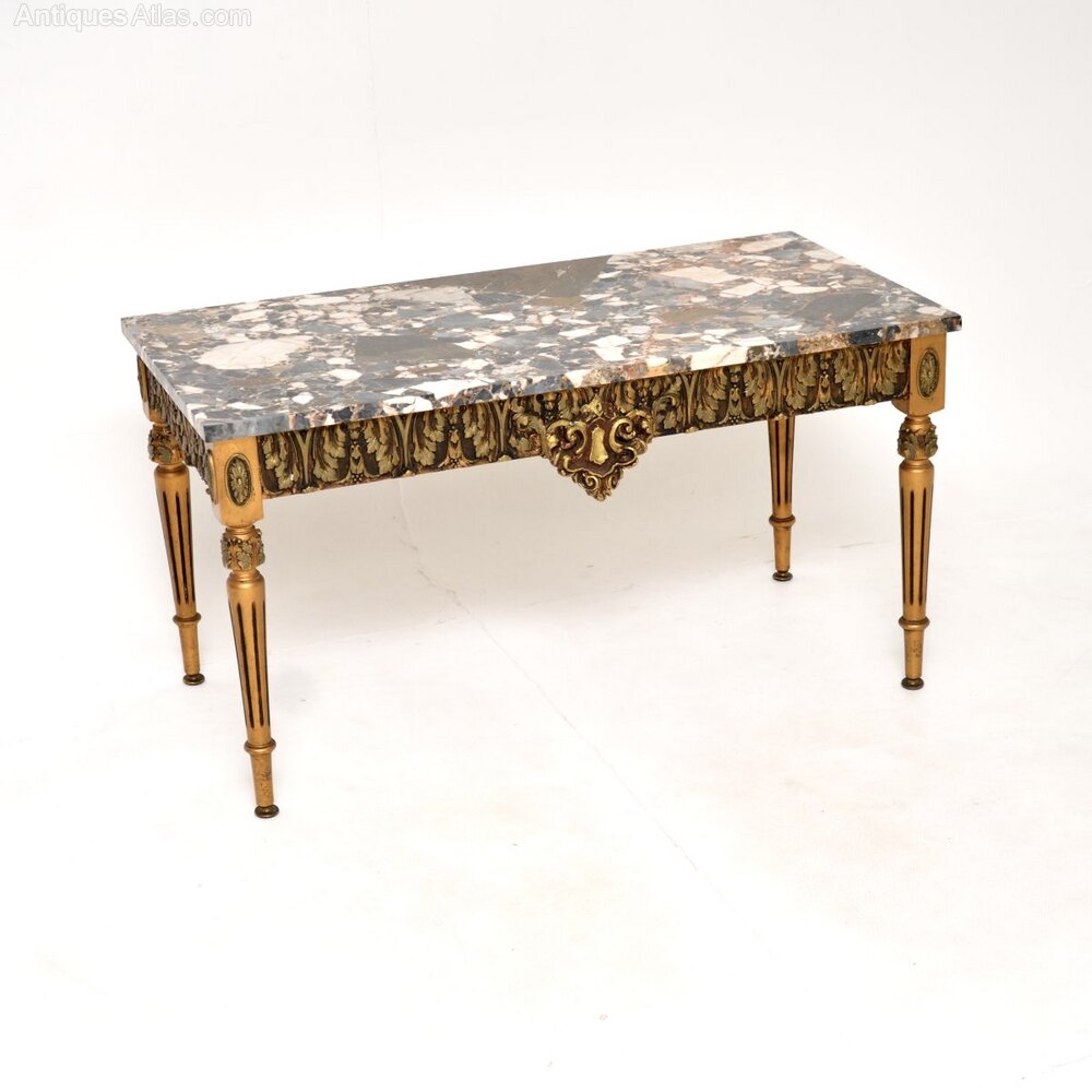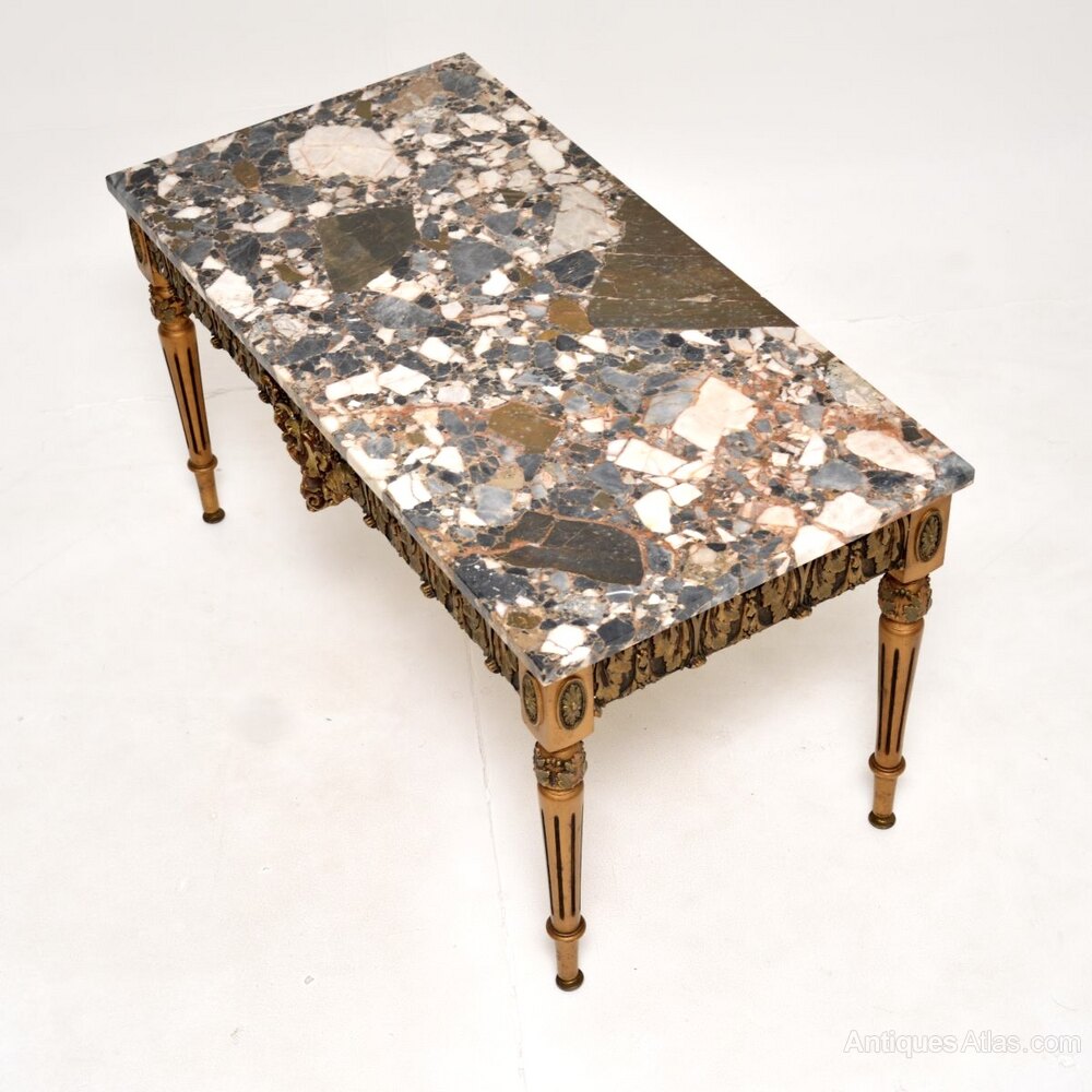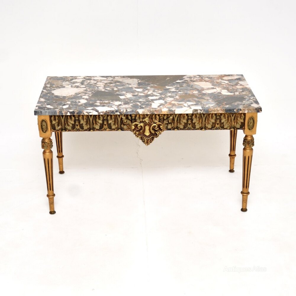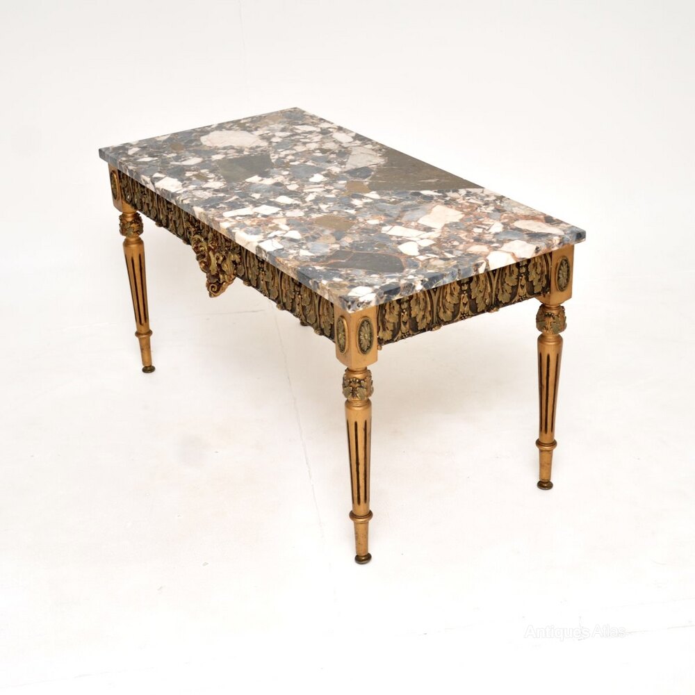 A beautiful antique French gilt wood marble top coffee table, dating from around the 1930’s.