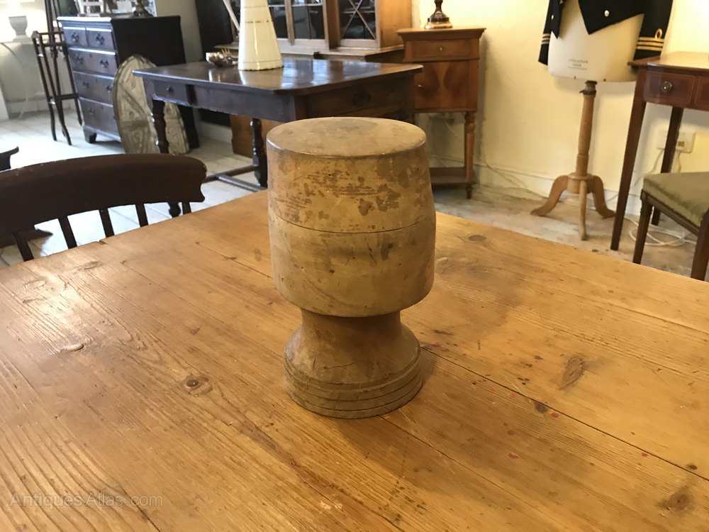 Antique French milliners hat block on stand late 19 century. This one takes into two pieces it’s as found with a good polish it will come up great.