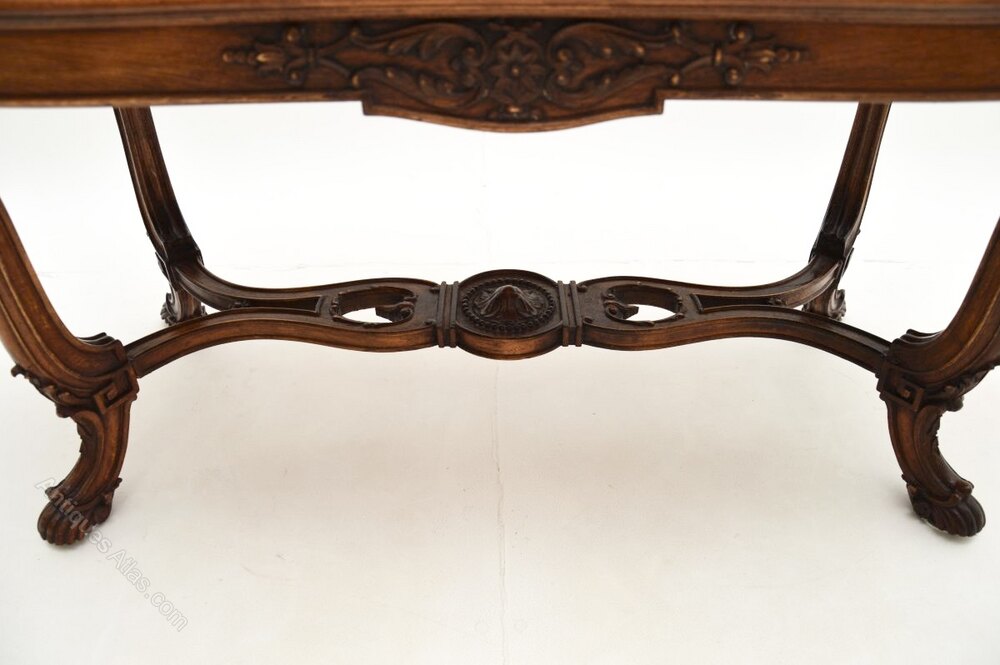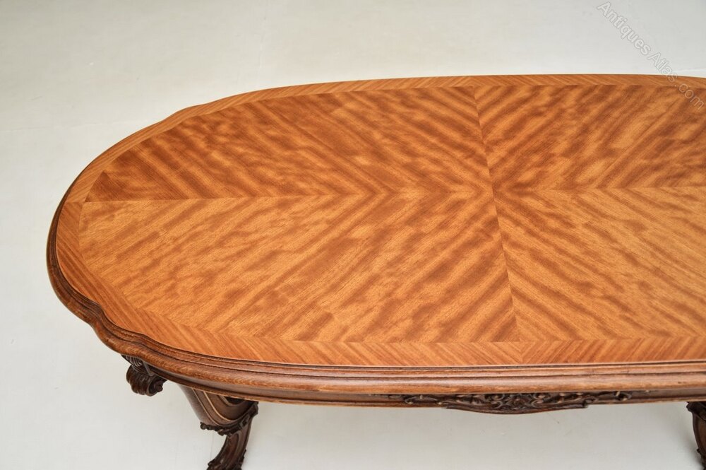 This is of superb quality, it is a very useful size. The top has stunning satin wood grain patterns and colour tones, with cross banded edges. It sits on a beautiful base with flowing curves and crisp carving.